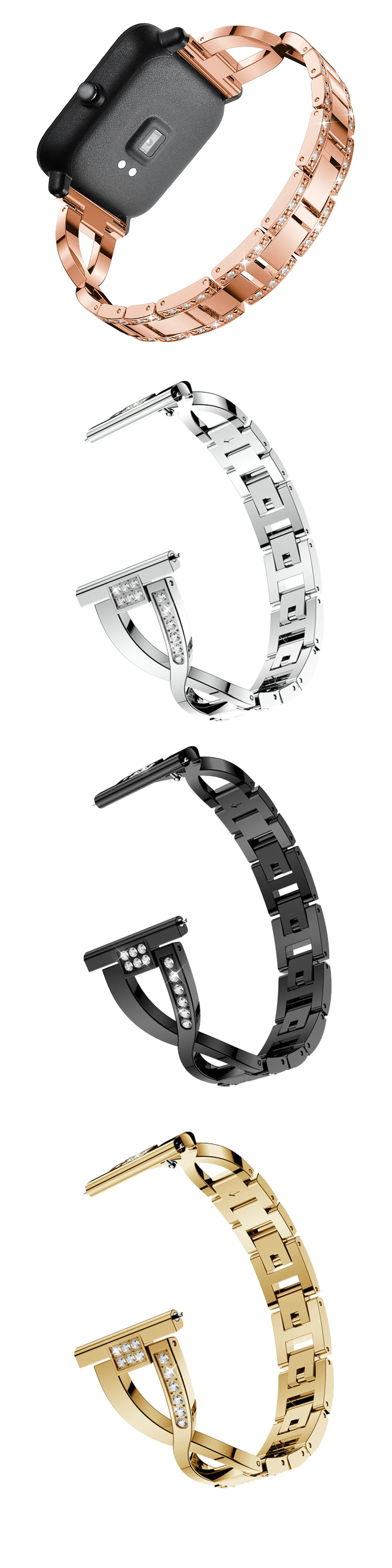 Для Huami Amazfit GTR/Bip/GTS для Huawei Watch GT 2 сменный Браслет со стразами часы браслет аксессуары из нержавеющей стали