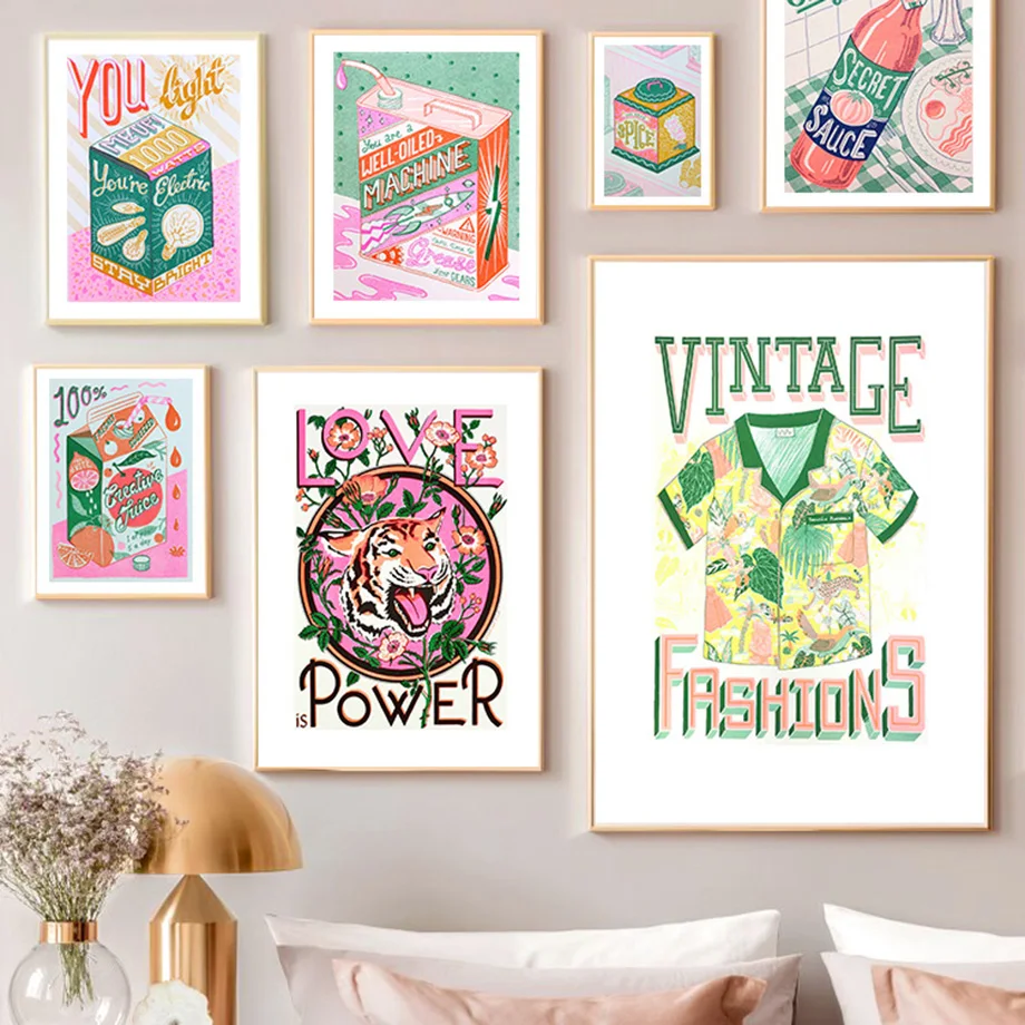 Психоделизм Тигр молоко сок вино кухня Настенная Картина на холсте скандинавские постеры и принты настенные картины декор для гостиной