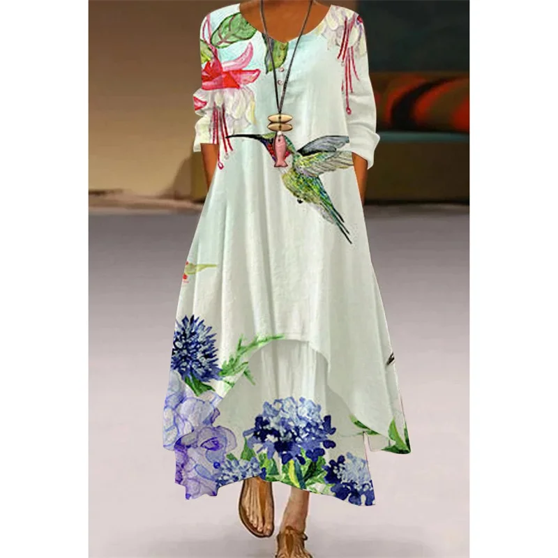 Женское длинное платье-макси с цветочным принтом, средней длины