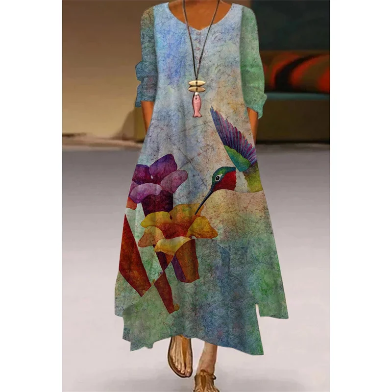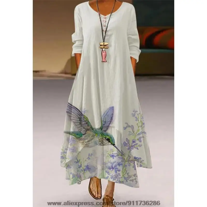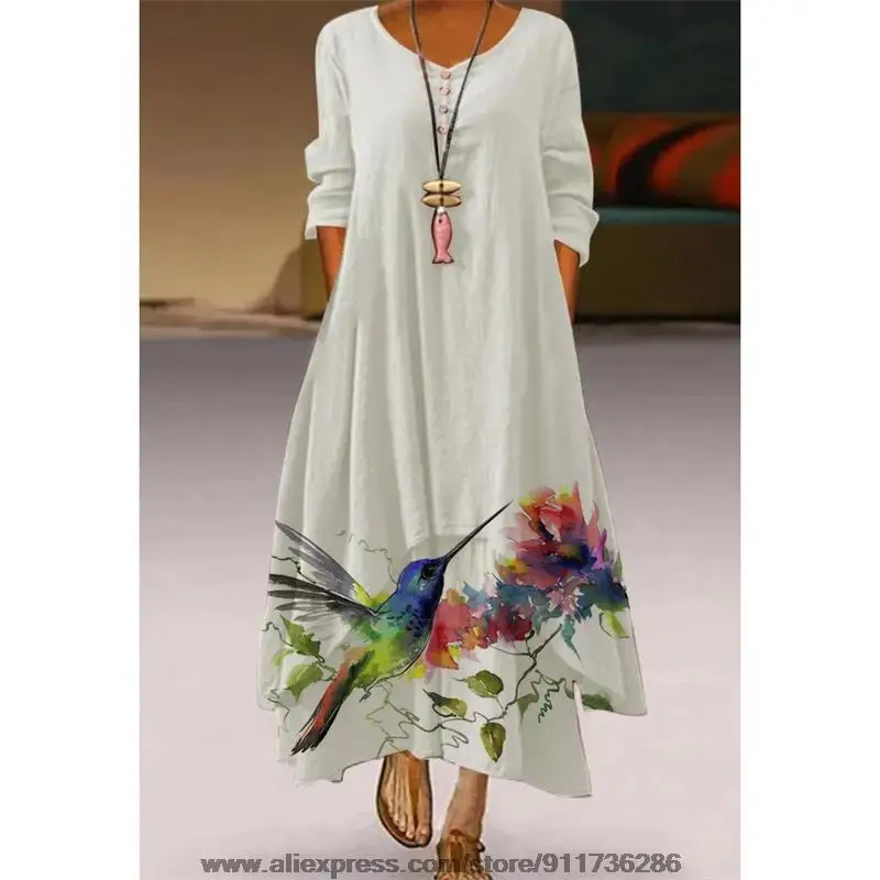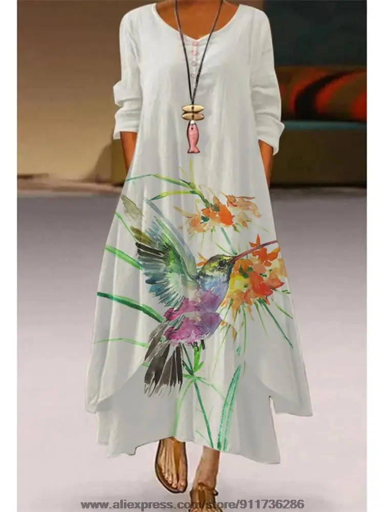 Женское свободное платье с длинным рукавом, длинное пляжное платье ...