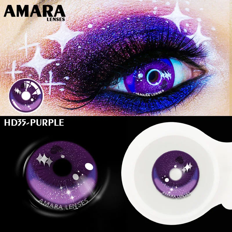 Цветные контактные линзы AMARA для глаз 2 шт. Аниме Косплей цветные линзы ed синие фиолетовые линзы для Хэллоуина контактные линзы Красота Макияж