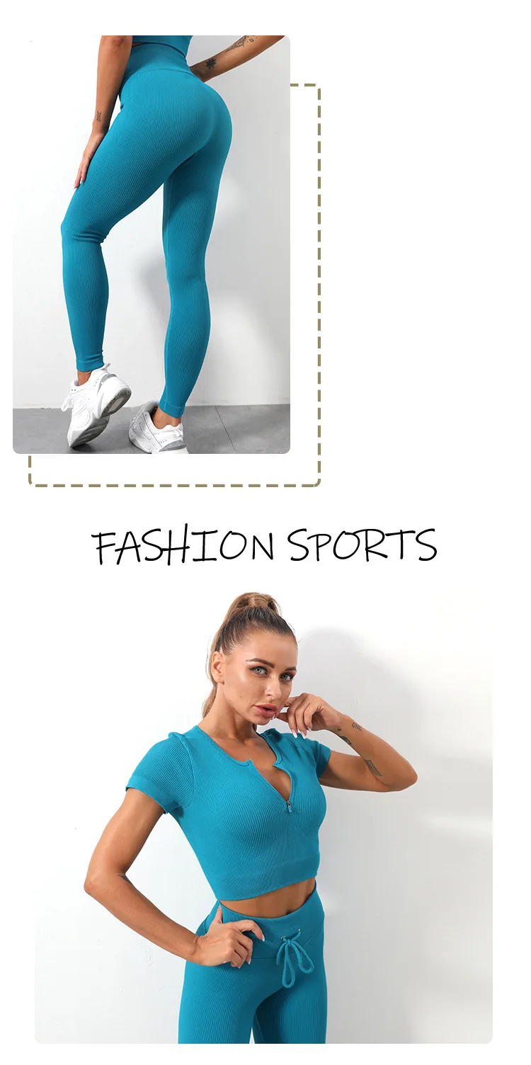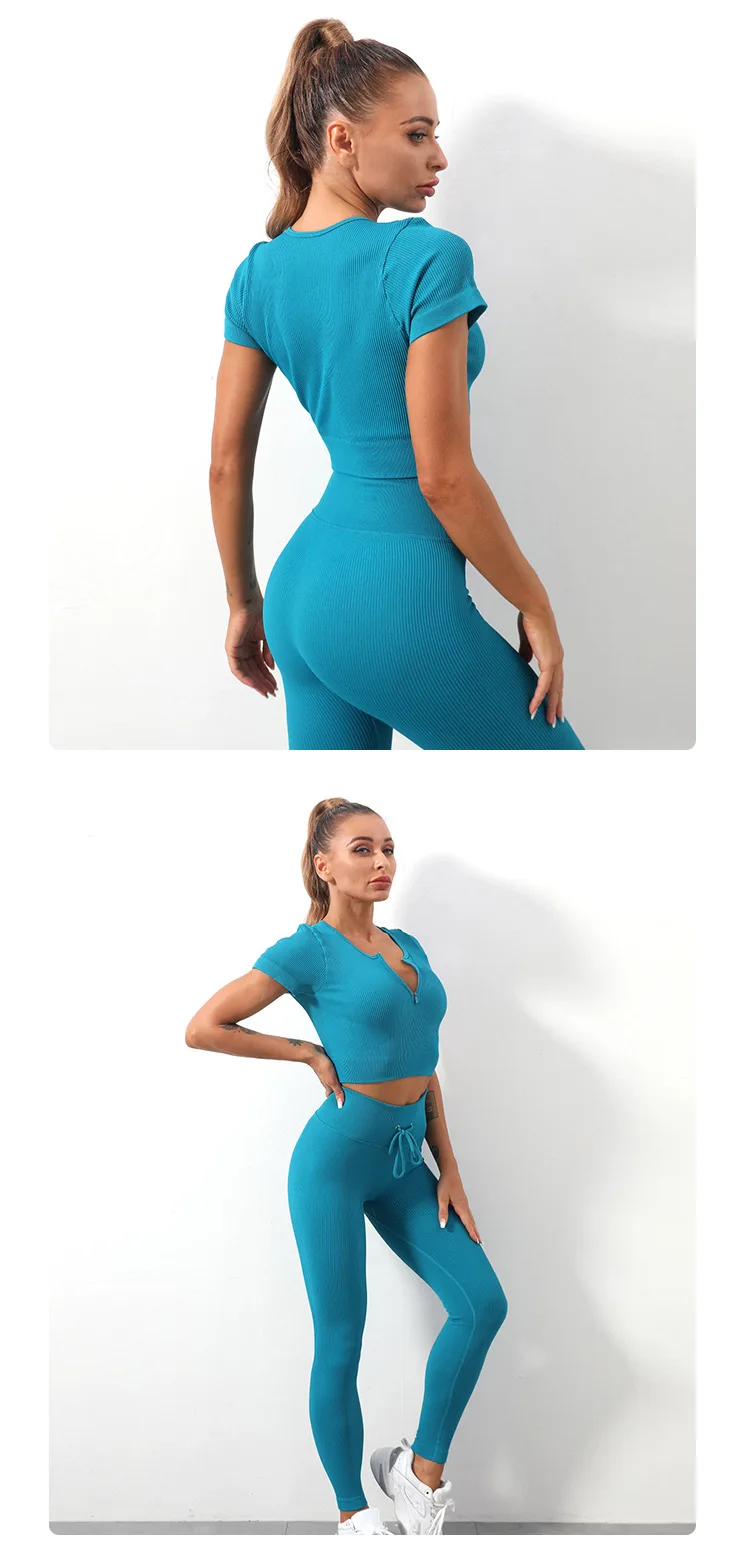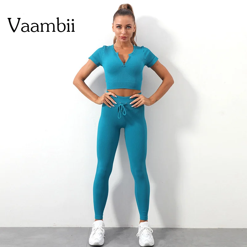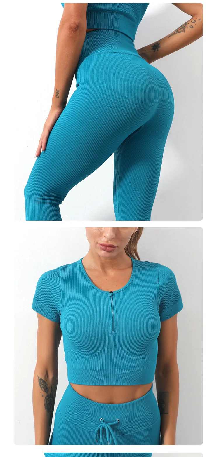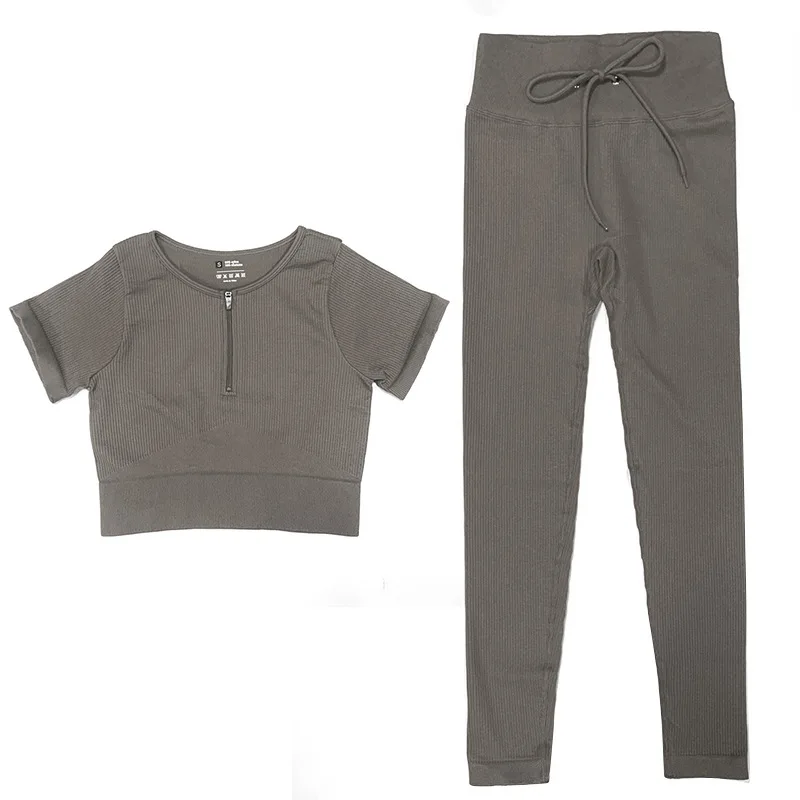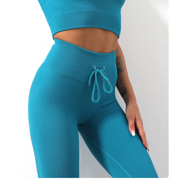Женский спортивный костюм из 2 предметов, бесшовный спортивный костюм в рубчик