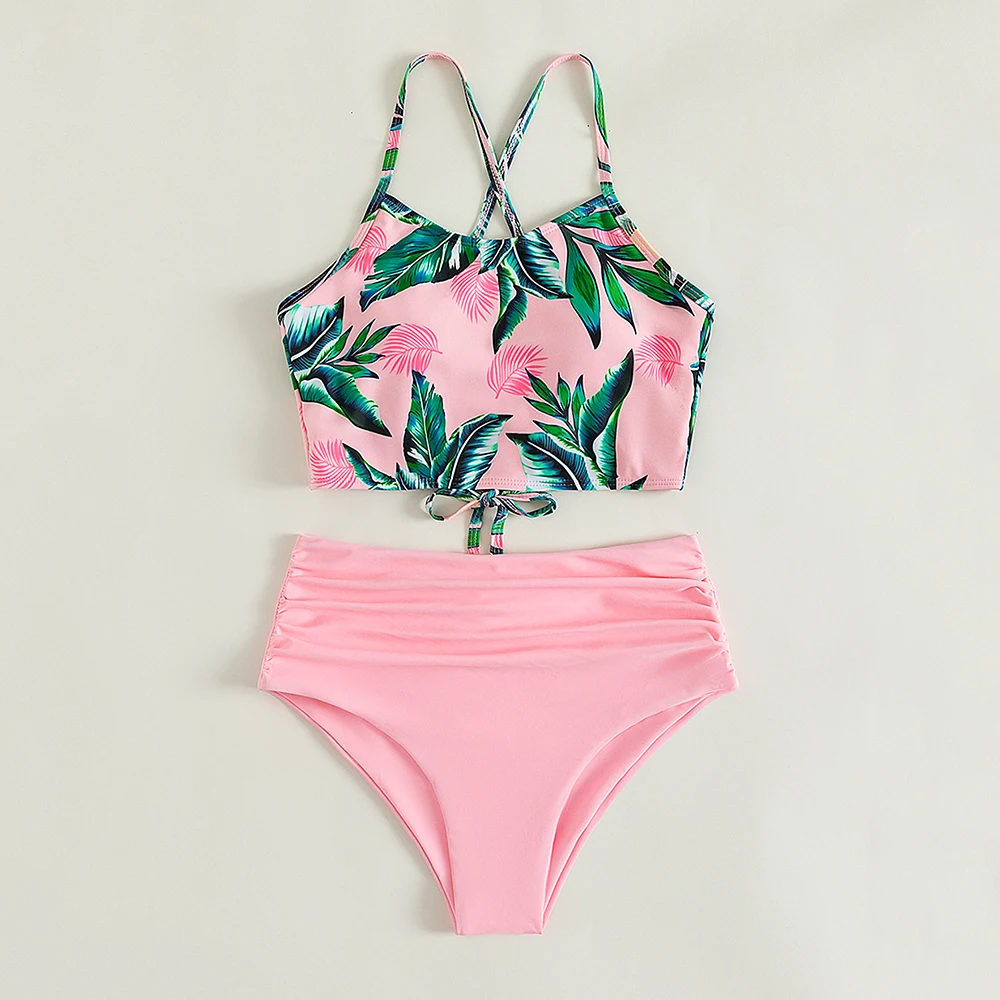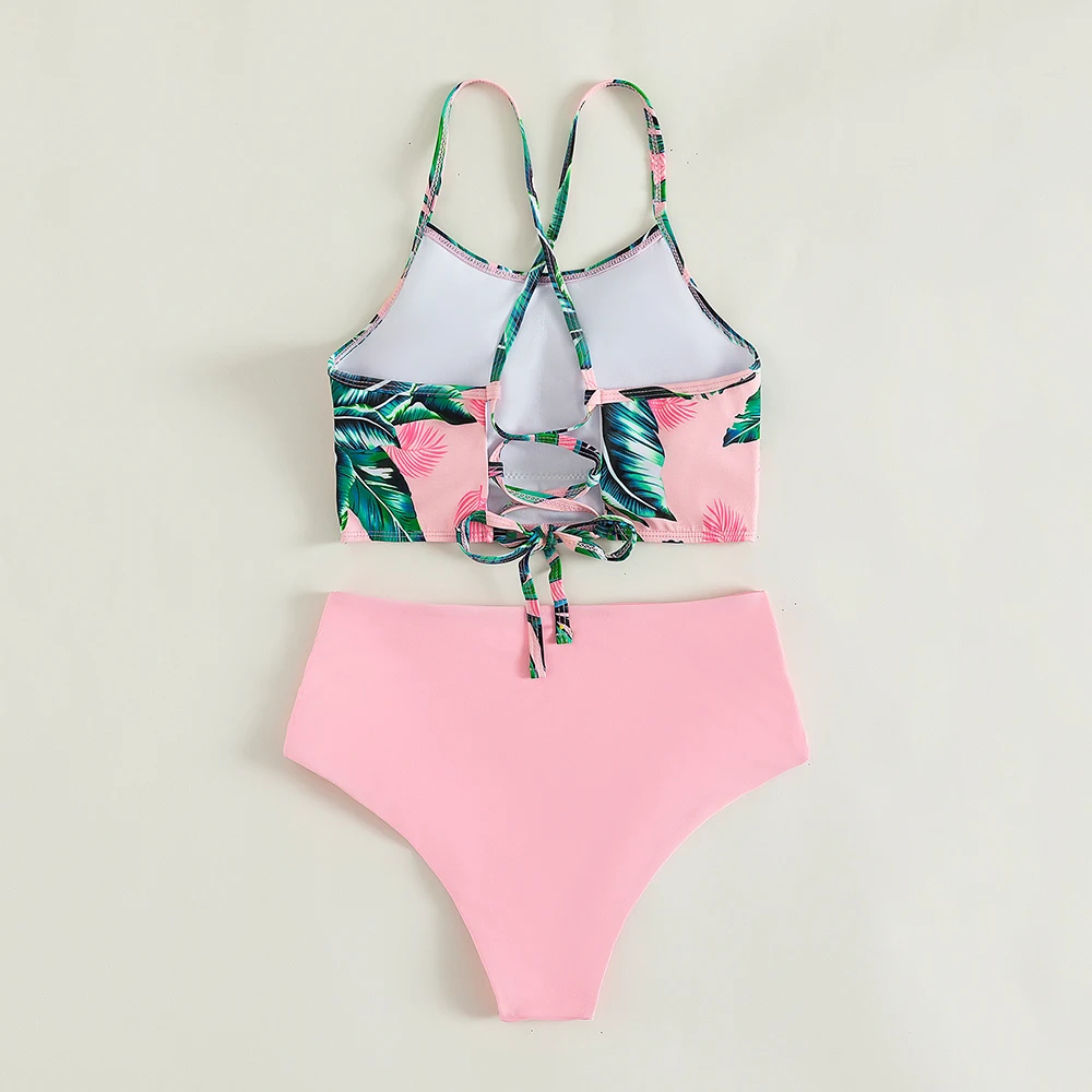 Бикини с принтом листьев 2021, купальник с высокой талией, женский купальник с высокой горловиной, Женский комплект бикини из двух предметов, купальные костюмы, пляжная одежда