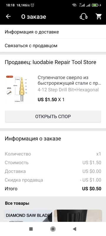 заказ пришел, отслеживание посылки было . покупал с купоном 1$, обошлось в 0.52$. было 2 купона по 1$, взял 2 сверла, каждое сверло выслали отдельно. в работе пока не пробовал. спасибо продавцу