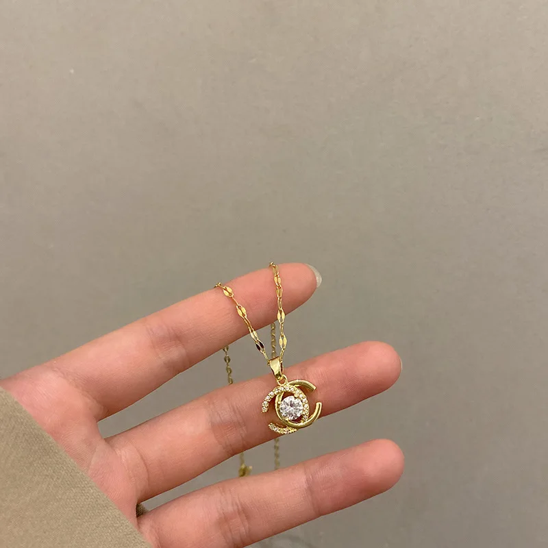 Модная цепочка до ключицы из титановой стали золотого цвета для жен...