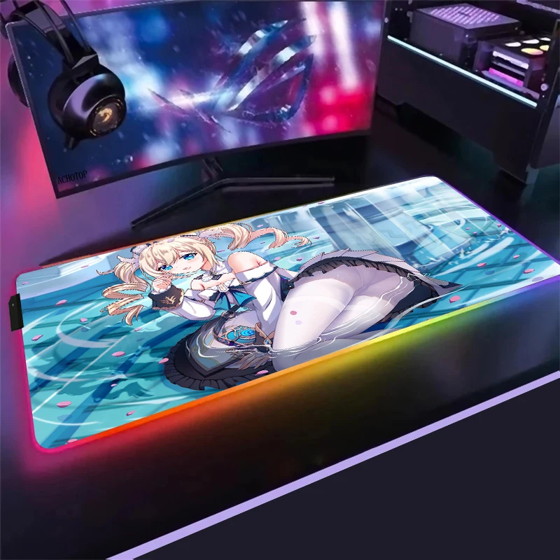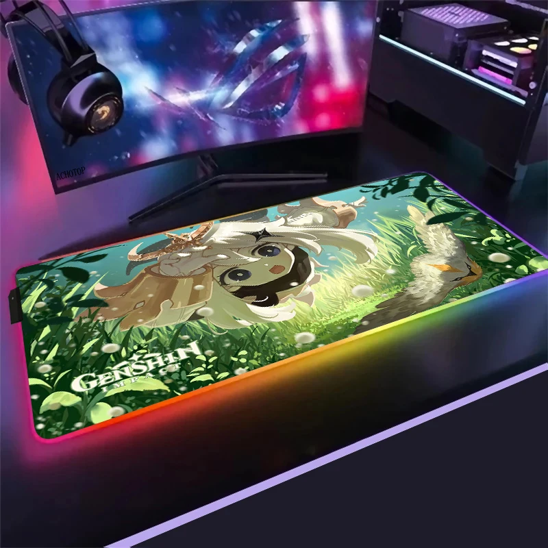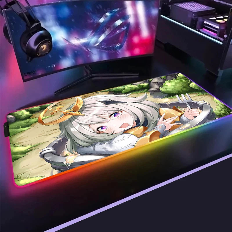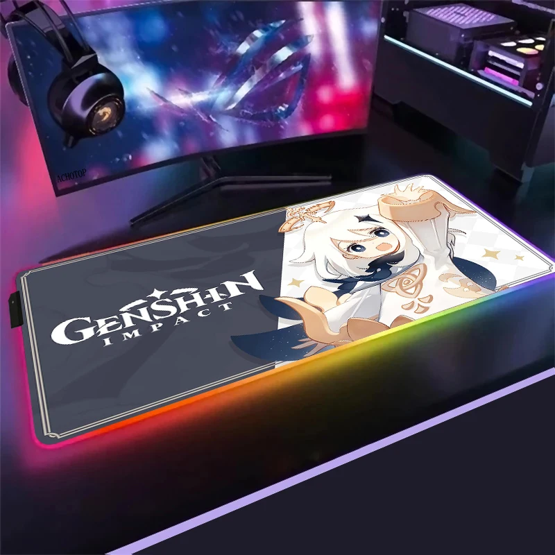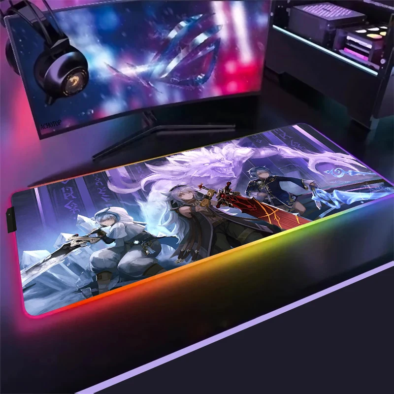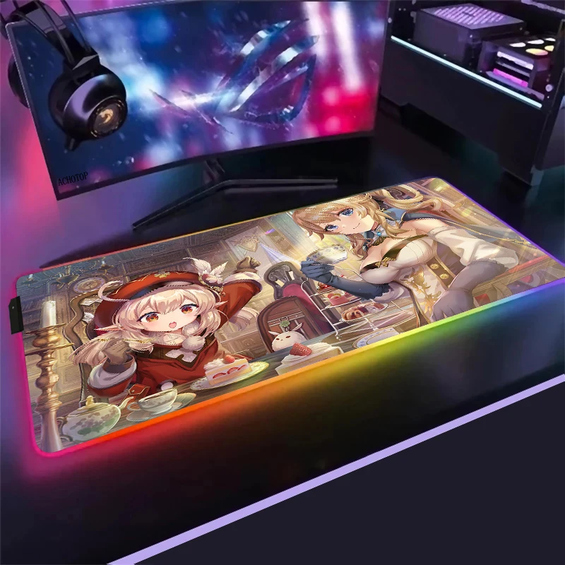 Большой игровой RGB коврик для мыши Anime Genshin Impact, компьютерный коврик для мыши со светодиодной подсветкой Otaku XXL, Настольный коврик для клавиатуры