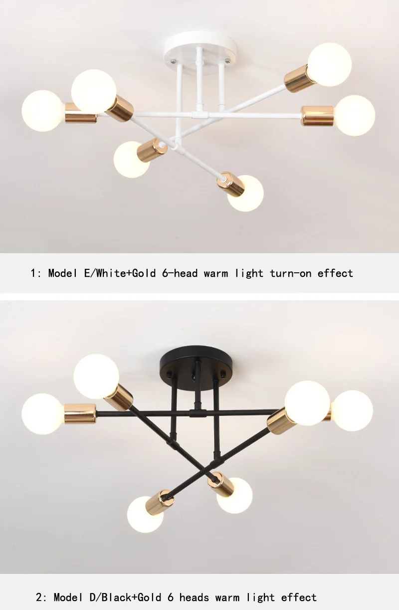 2: Модель D/Золотой + черный 6-головкой теплое светильник включения эффект