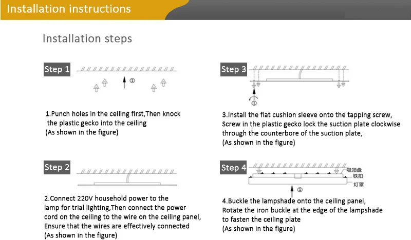 1. Сначала пробивайте отверстия в потолке, а затем выбрасывайте пластиковый геккон в потолок (на фото);