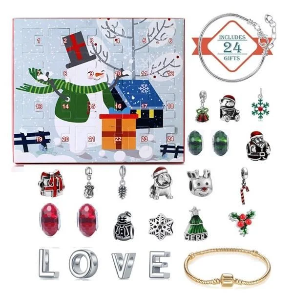 Браслет "сделай сам", браслет с подвеской в виде календаря, Рождественский календарь с обратным отсчетом, календарь для имвента, браслет DIY с рождественской тематикой