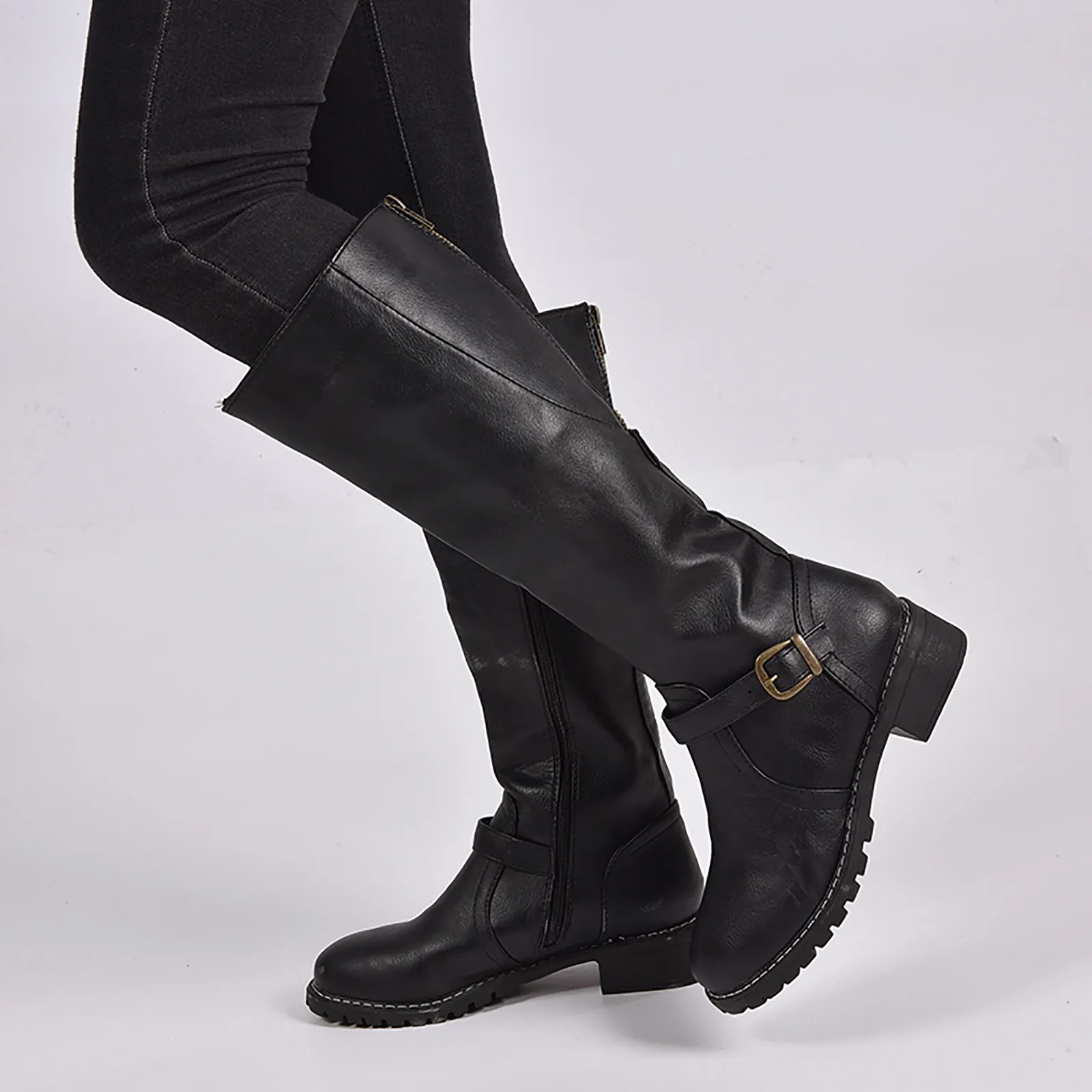 Женские высокие сапоги до бедра, высокие сапоги на платформе, на толстой подошве, мотоциклетные сапоги для осени и зимы