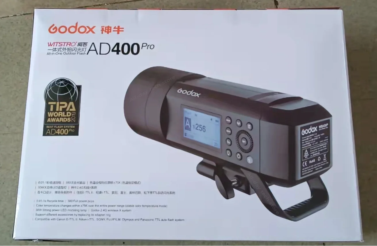 Внешняя вспышка Godox AD400Pro WITSTRO все-в-одном, 0,01 Вт, высокая мощность 1 с, время перезарядки, 12 непрерывных вспышек в 116 выходных мощностей