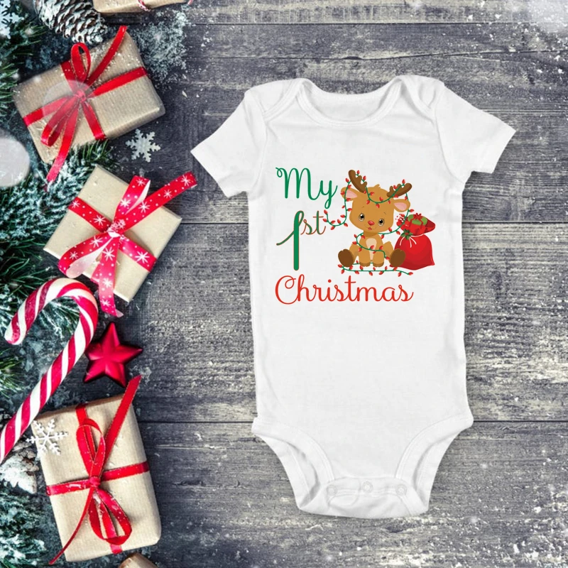 Детский Рождественский комбинезон DERMSPE, Одежда для новорожденных мальчиков и девочек, рождественские комбинезоны с коротким рукавом, 3105