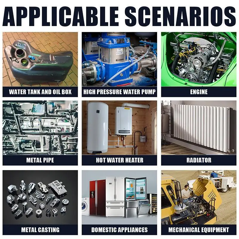 Широкий спектр примененияВ основном используется дляОтливка из железа и стали, песочные отверстия и отверстия, а также отливки дефектовТакие как трещины. Его можно использовать для ремонтаТопливные баки, трубы, разрывы бетонаИ еще набор.