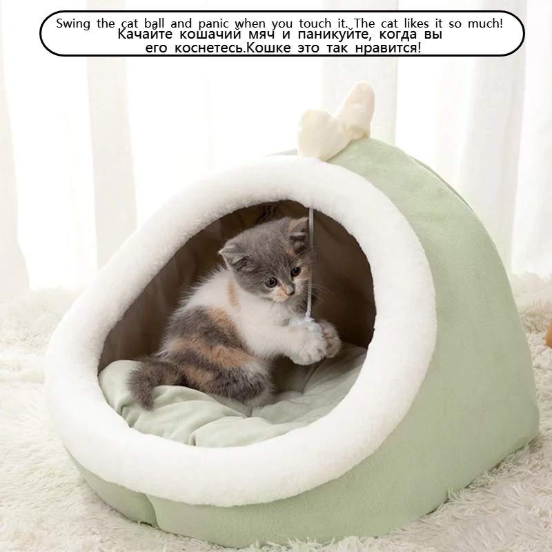 Дышащий домик для кошек и собак с подвесной игрушкой, самонагревающ...
