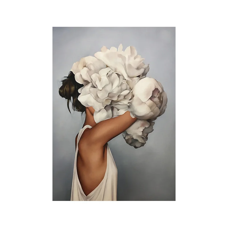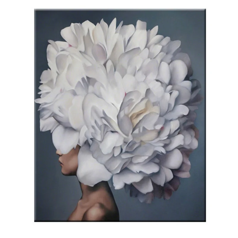 Nordic женская голова с цветами холст Картины стены художественные ...