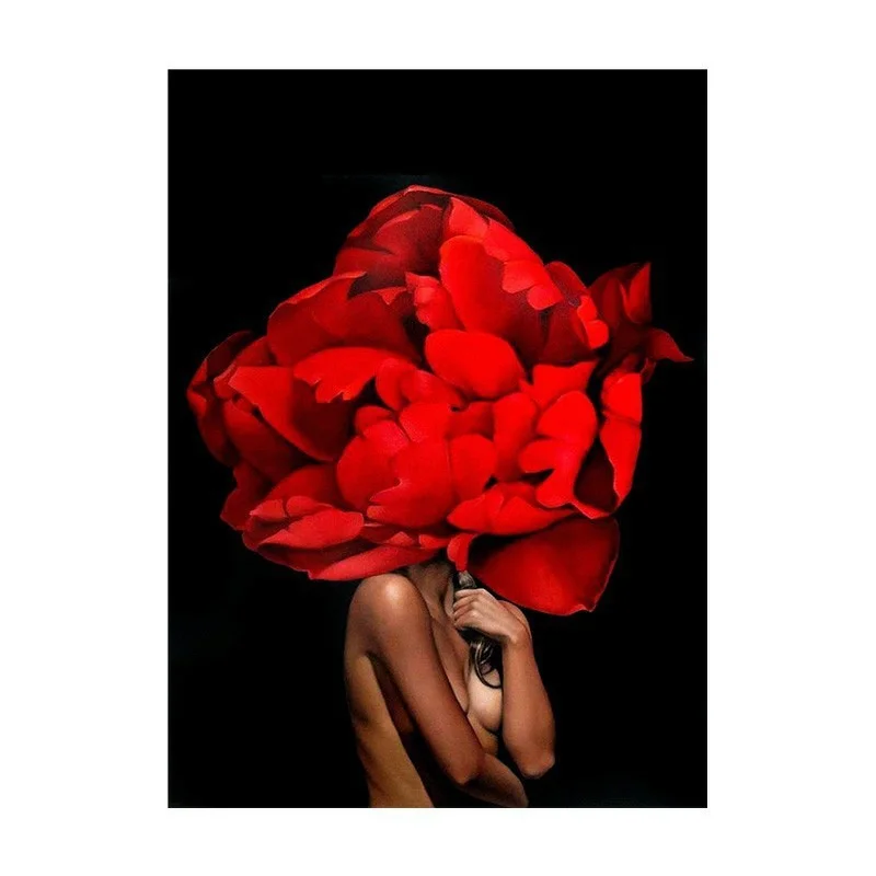 Модная Картина на холсте с головой девочки и цветами, современные настенные художественные принты и плакаты, картина для гостиной, украшение для дома