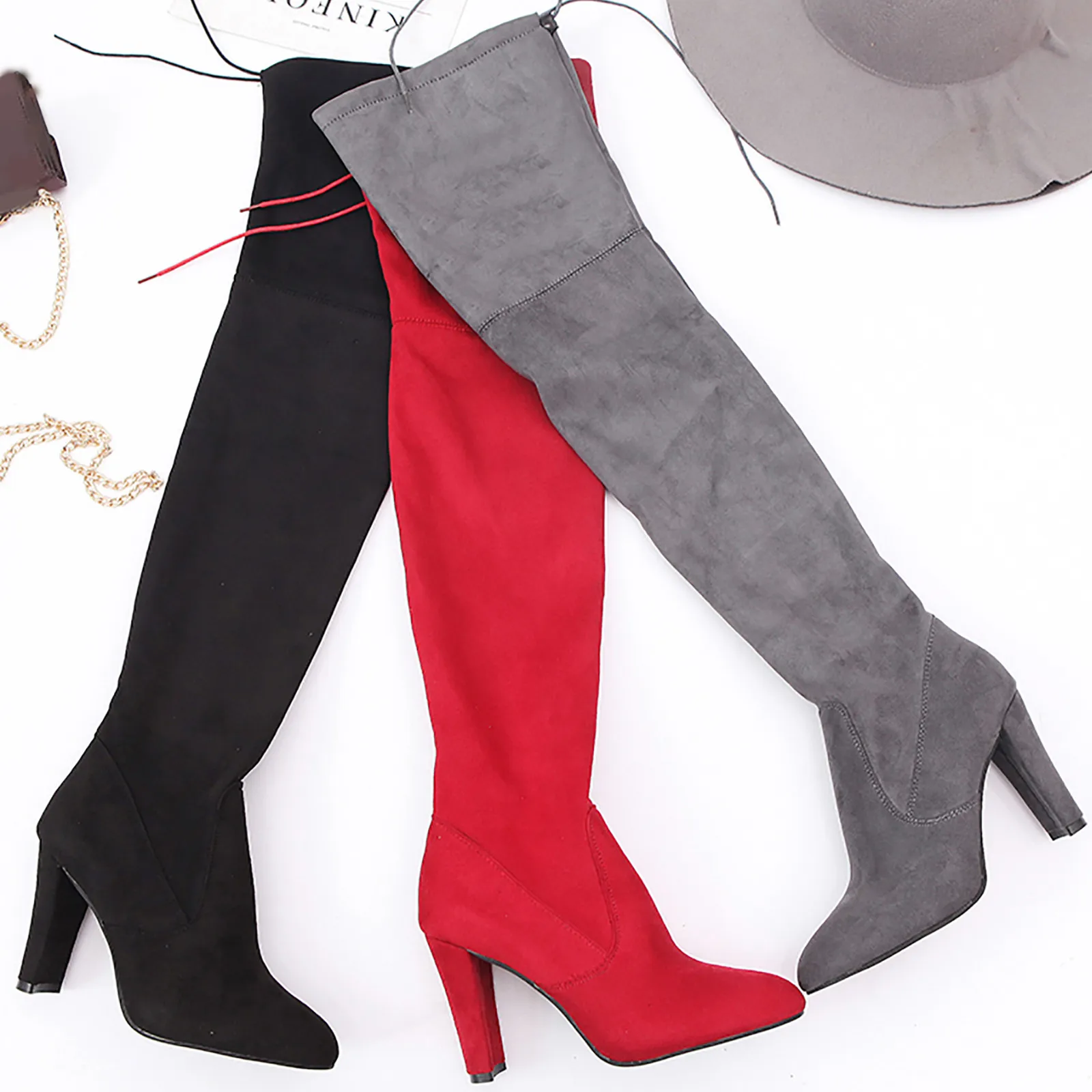 Женские однотонные Сапоги выше колена, сезон осень-зима, привлекательные эластичные сапоги на молнии с острым носком, модная женская черная обувь botas de mujer