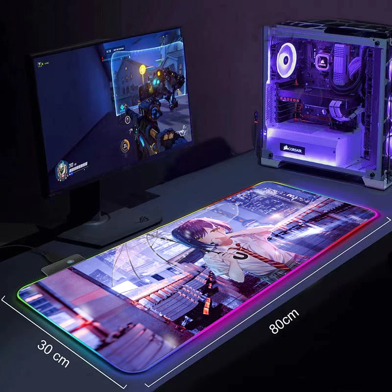 RGB коврик для мыши большой игровой компьютерный размер XXL аниме-п...