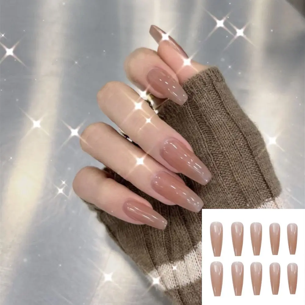 24 шт.корт. Искусственные ногти с клеем белые розовые градиенты Дли...