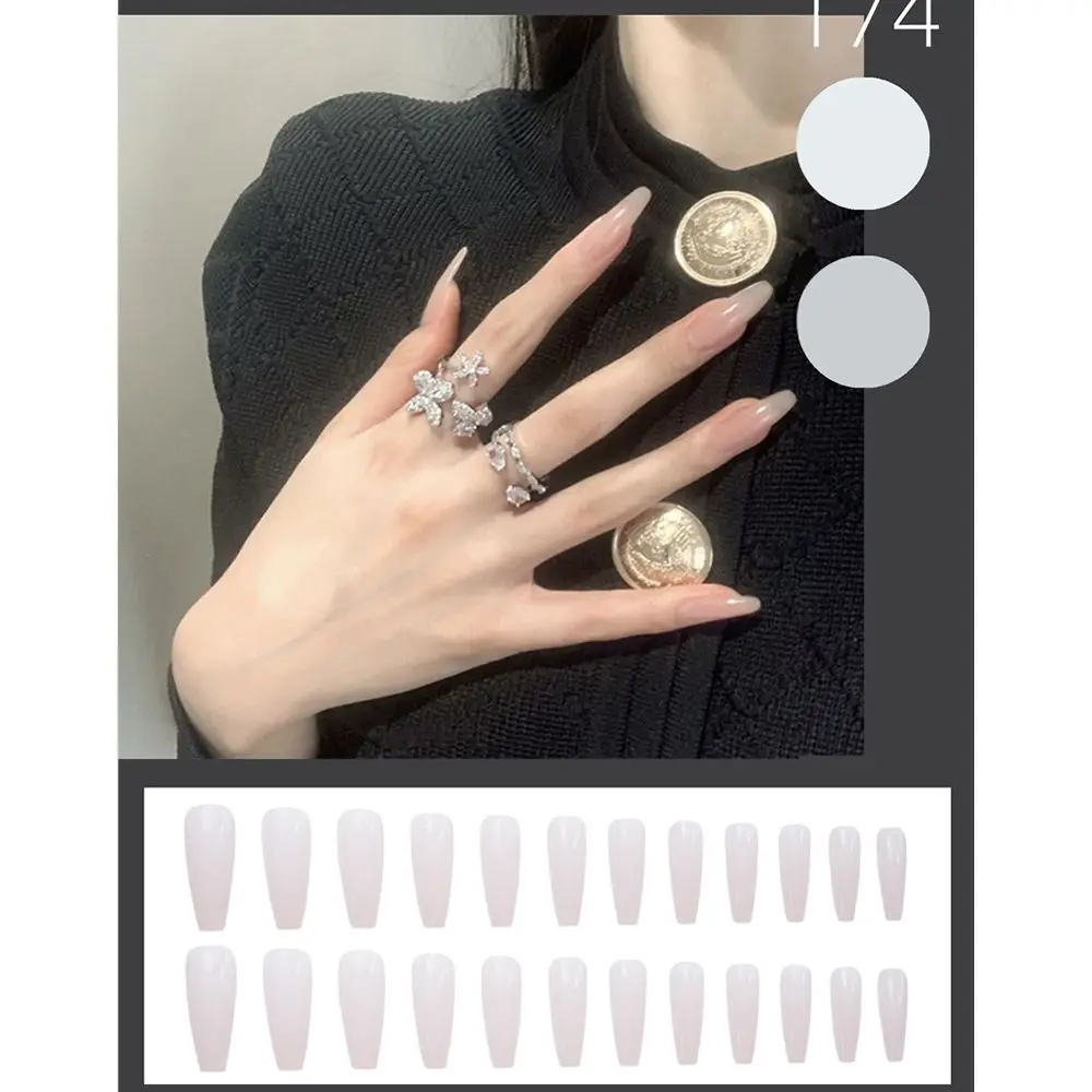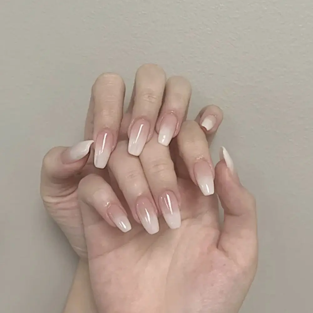 24 шт. градиентные белые накладные ногти короткий гроб съемные бале...
