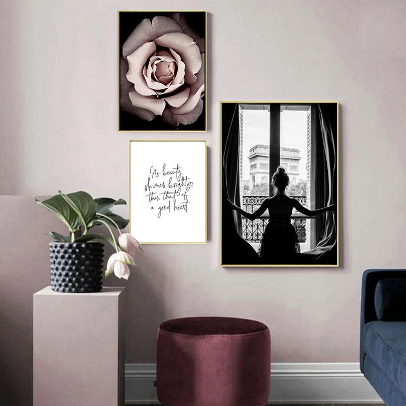 Скандинавский модный постер с розовыми цветами, сексуальная девушка...