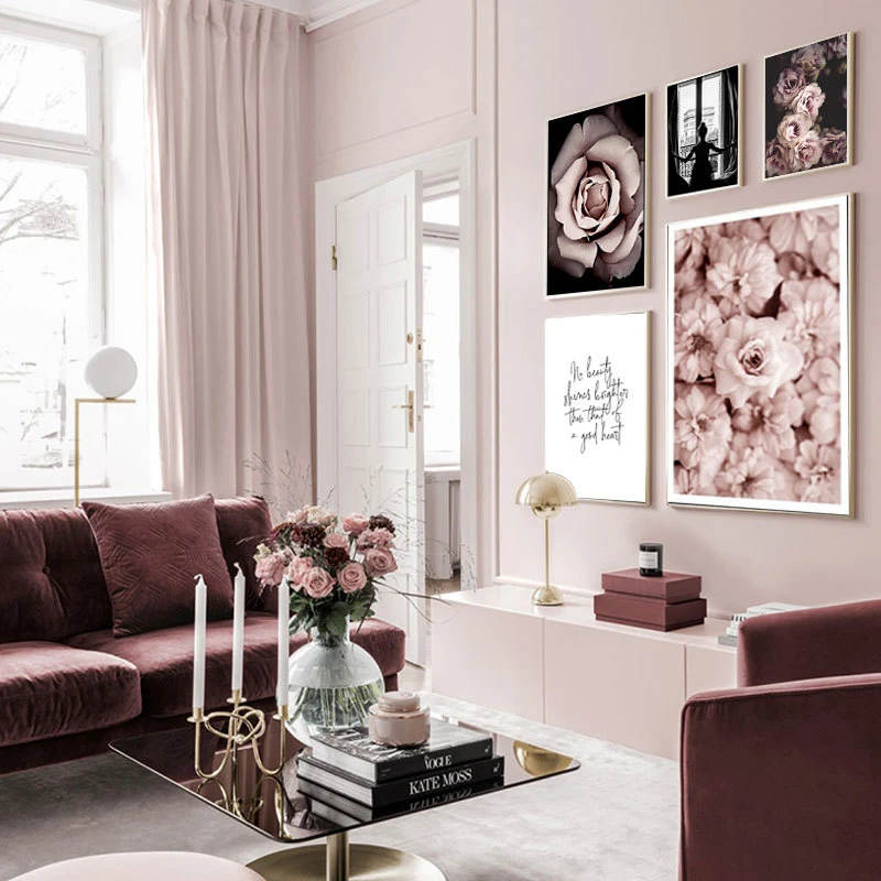 Скандинавский модный розовый цветочный постер, сексуальная девушка, скандинавский стиль, настенный художественный холст с принтом, картина, современный декор для гостиной, картина