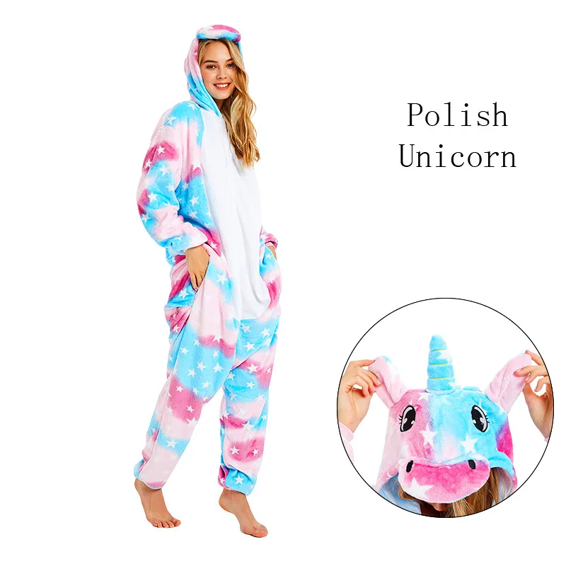 Пижама-комбинезон унисекс, фланелевая одежда для сна для взрослых, с рисунком единорога, животных, ститча, лисы, для мужчин и женщин, для пар, зима