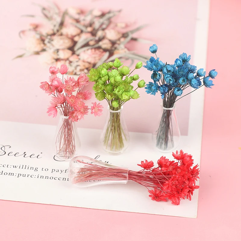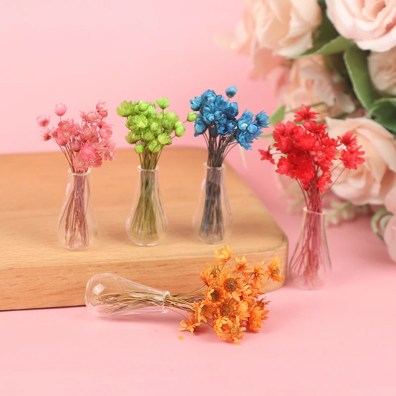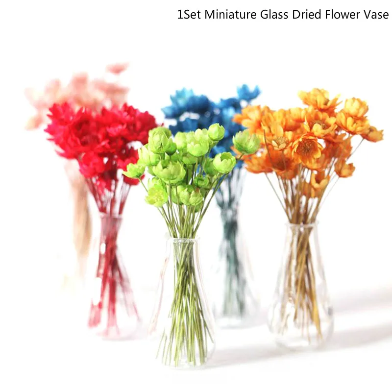 Миниатюрная Цветочная Модель со стеклянной бутылкой, 1 комплект, ваза, игрушки, украшение для кукольного домика, Миниатюрные аксессуары для кукольного домика