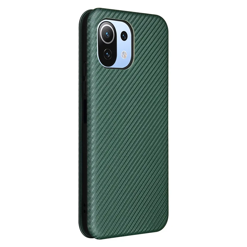 Кожаный чехол-книжка из углеродного волокна для телефона Xiaomi Mi 11 Lite 5G (4G)