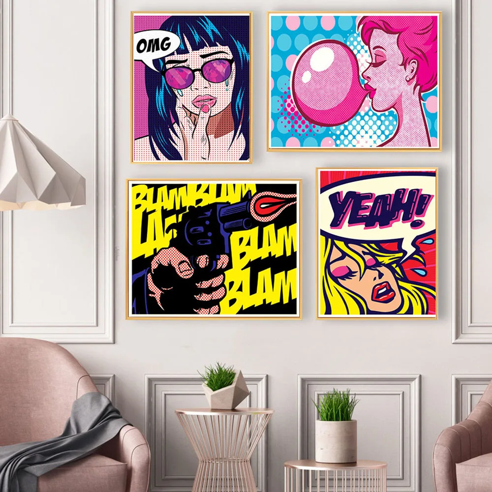 Потрясающий постер, поп-арт в стиле ретро Warhol Lichtenstein, красочная Картина на холсте для феминизма, современные картины, гостиная, домашний декор