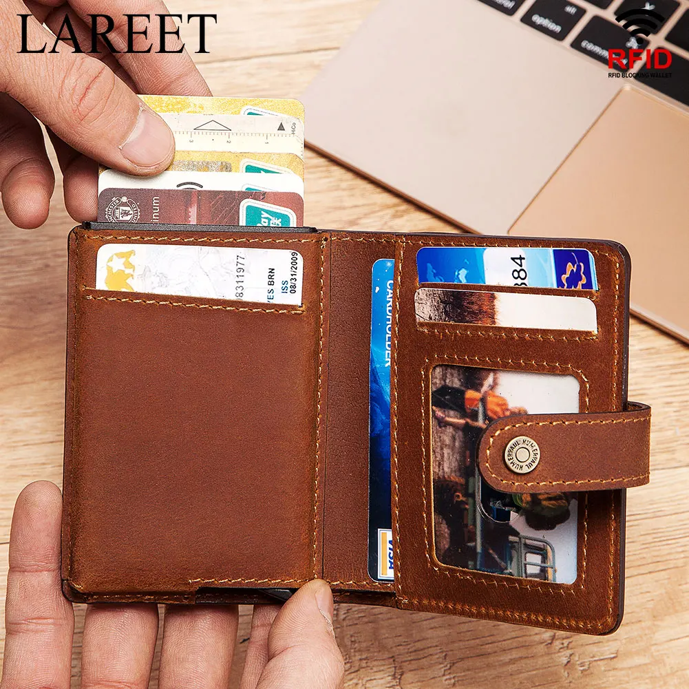 Кошелек для кредитных карт для мужчин, кожаный алюминиевый чехол с ...