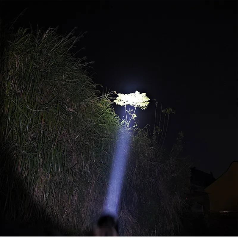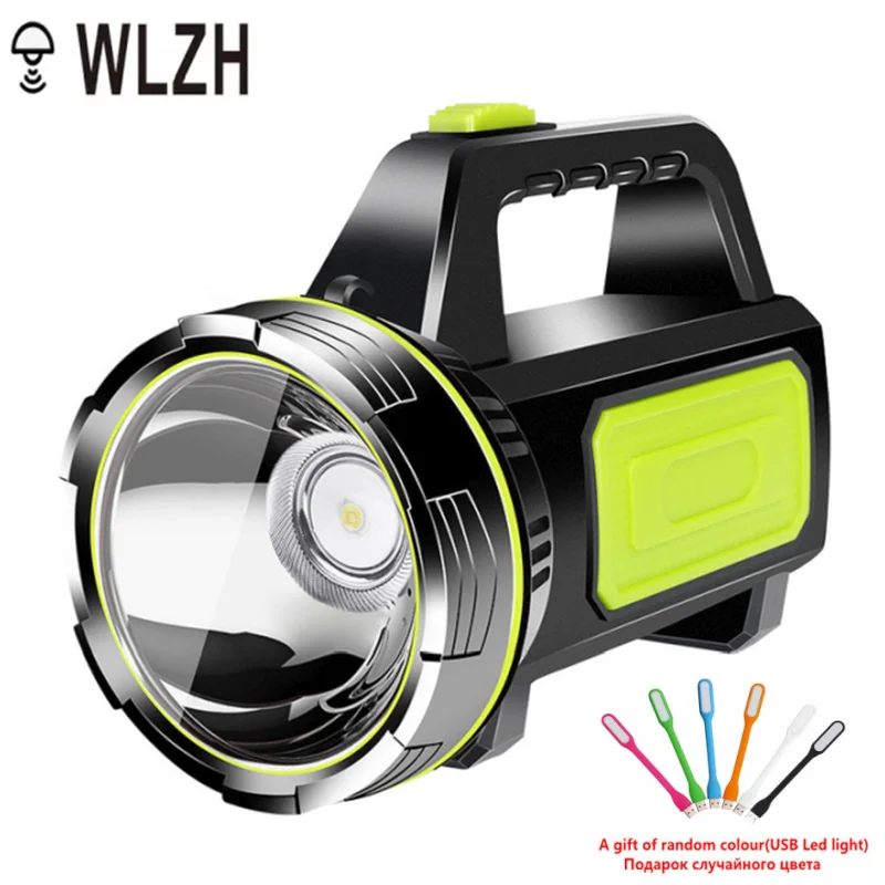 Мощный светодиодный фонарик Сильный прожектор Водонепроницаемый USB аккумуляторный прожектор дальний светильник для охоты с боковым светом