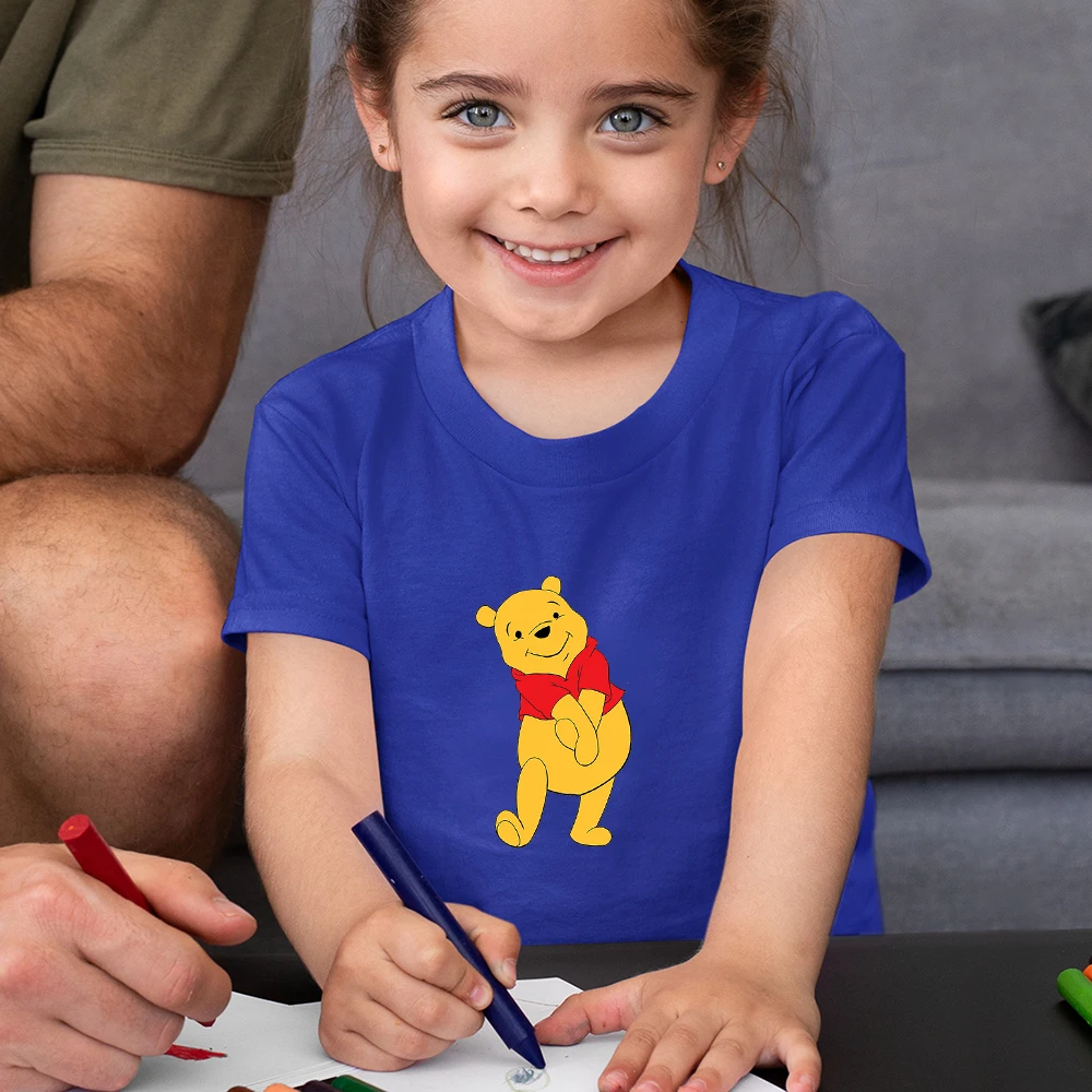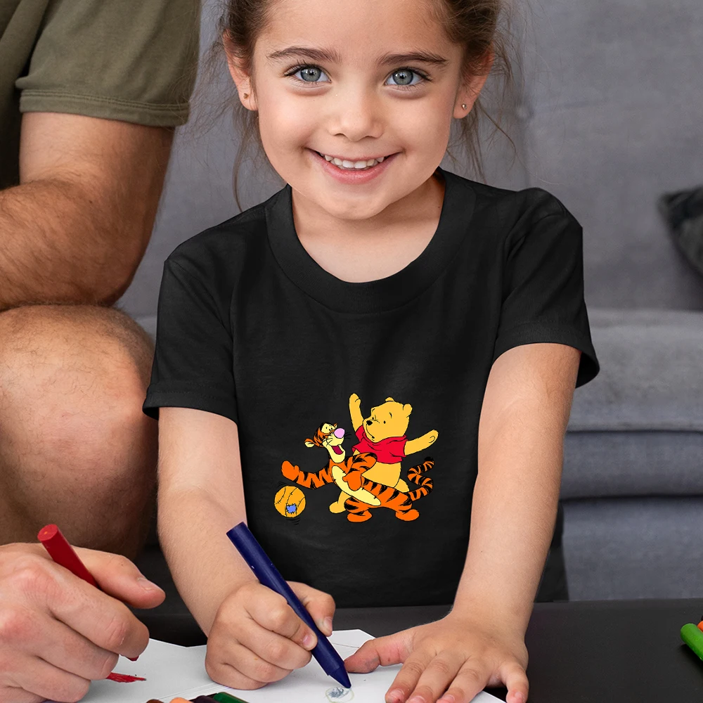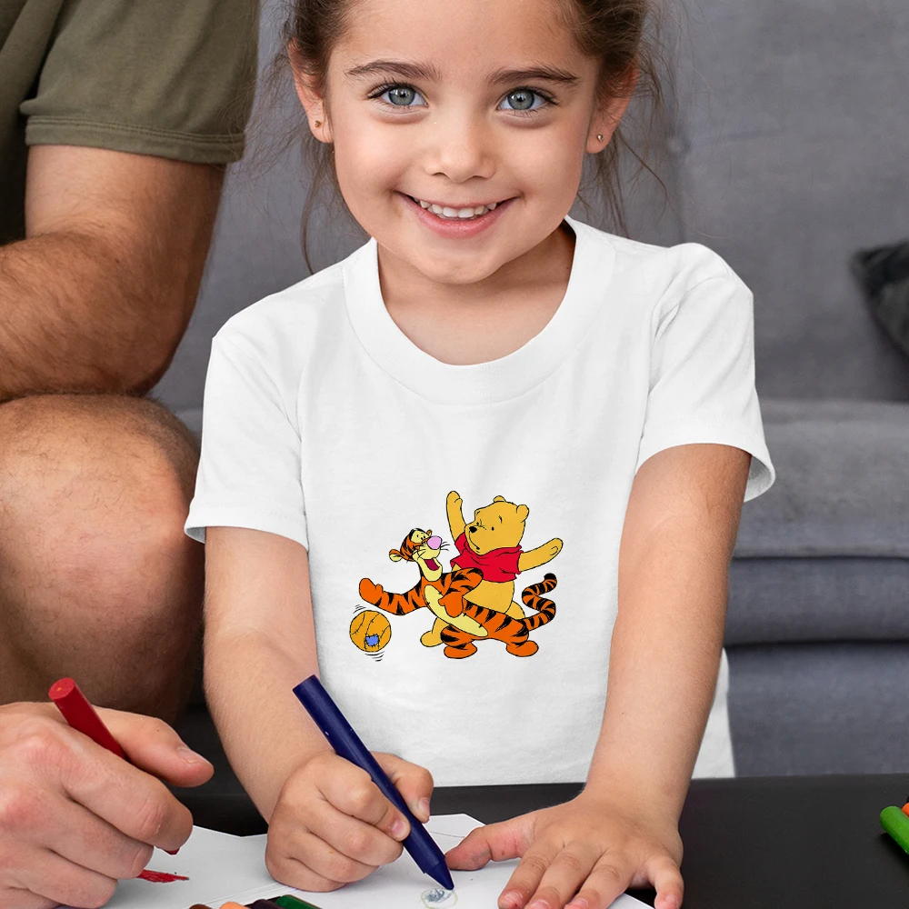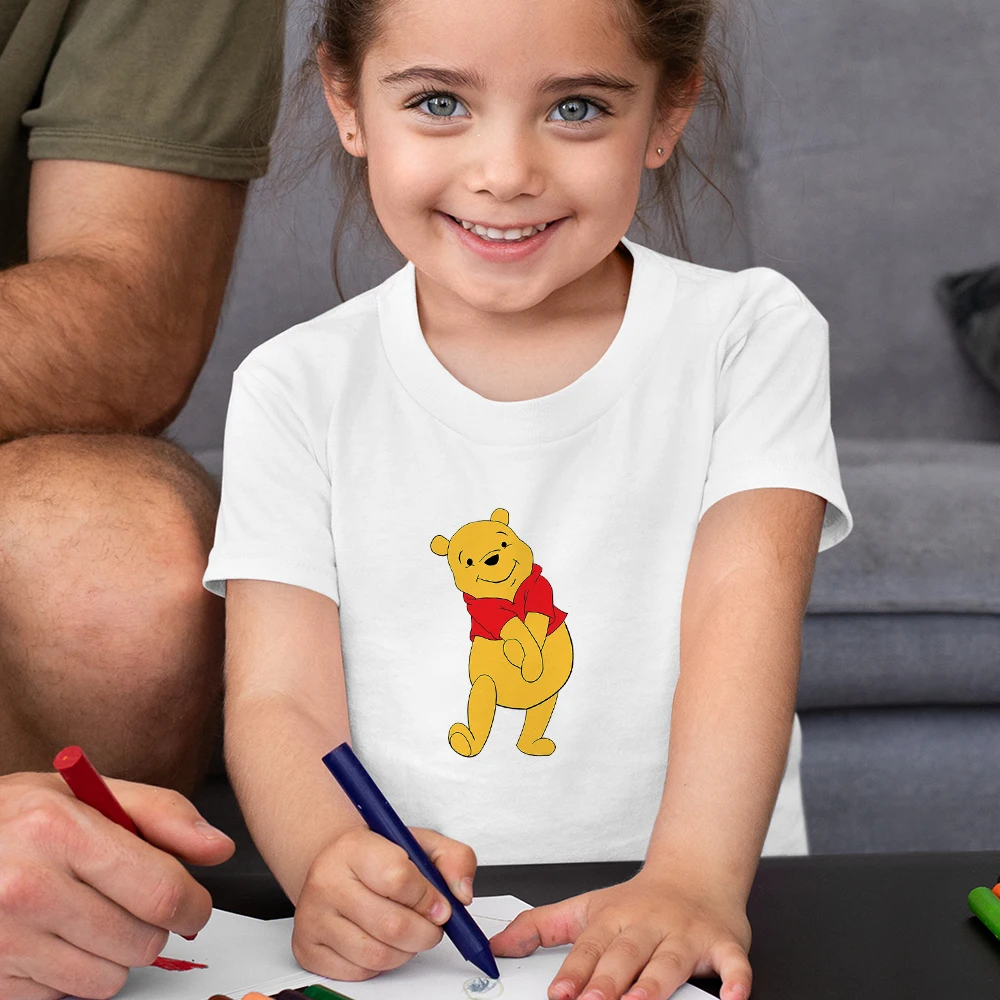 Забавная детская футболка с Винни-пухом, летняя повседневная одежда большого размера для девочек, детские топы Y2k, модная детская футболка Disney 2021