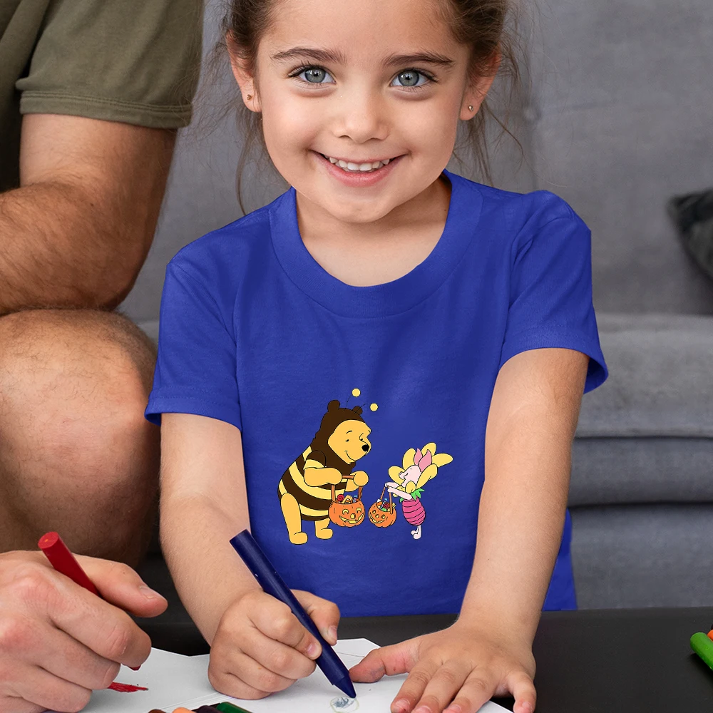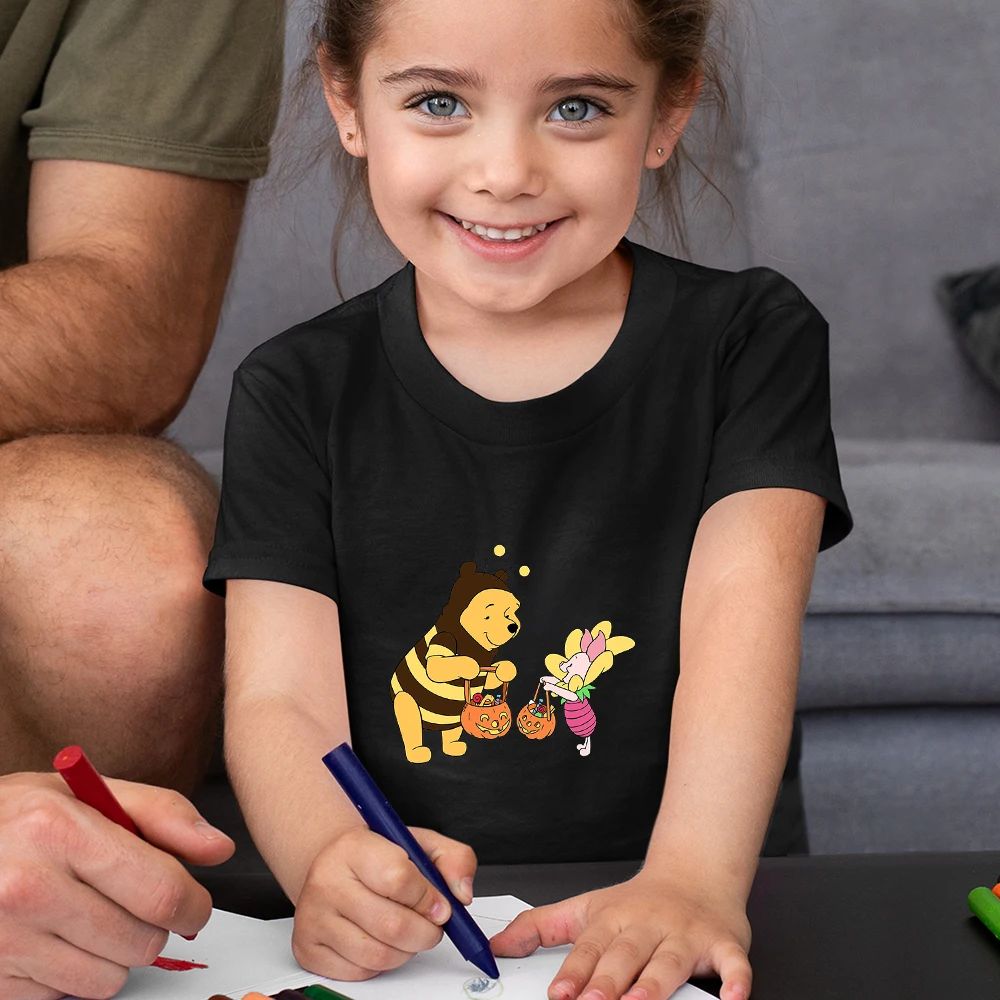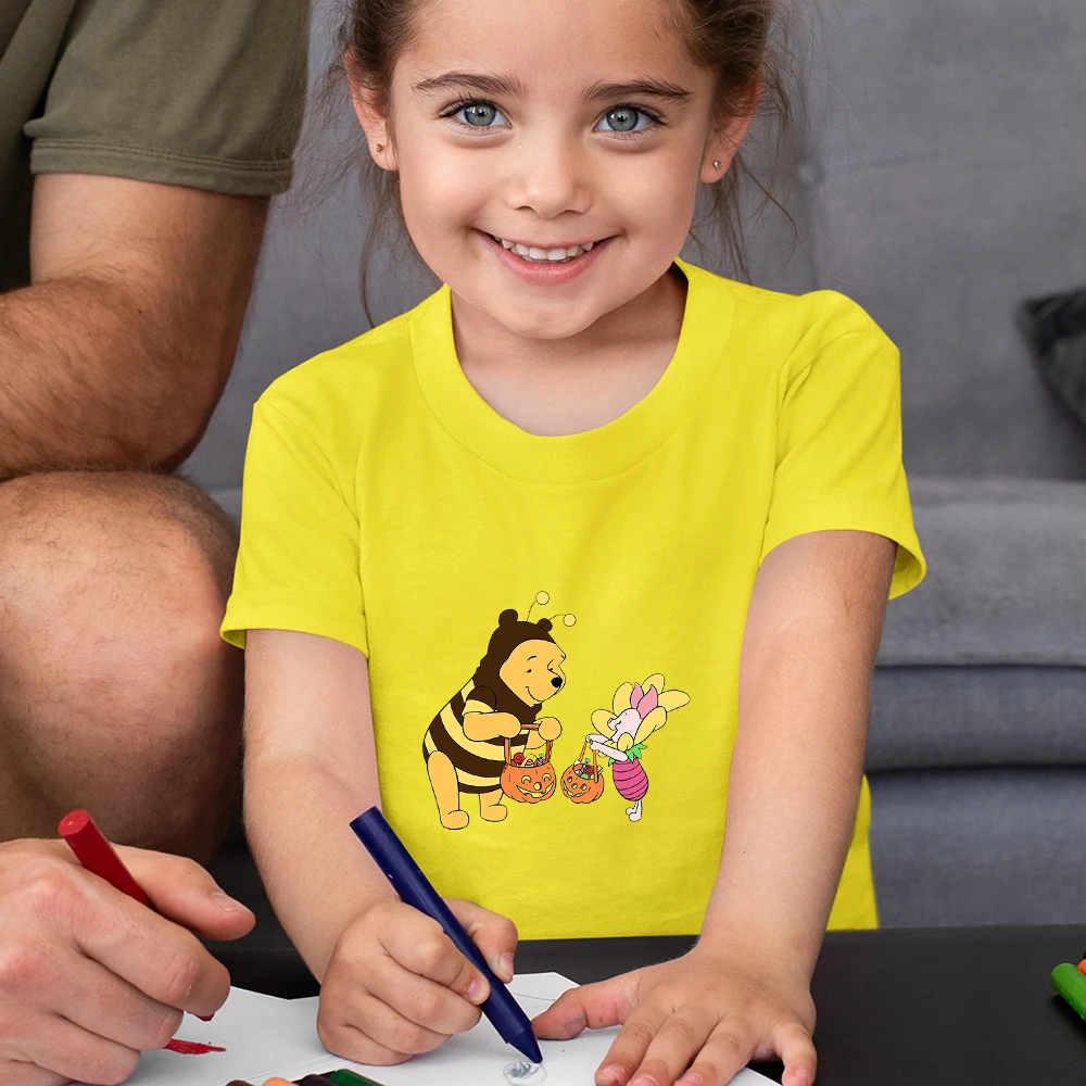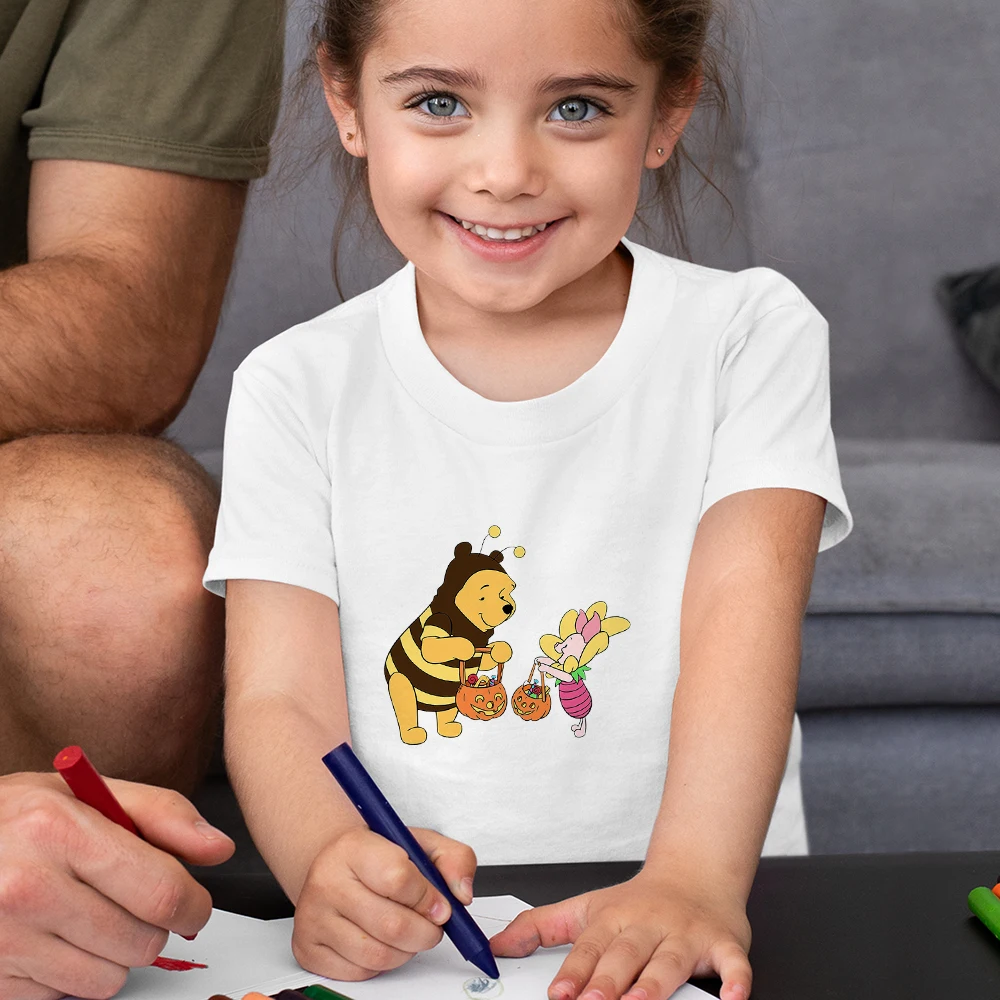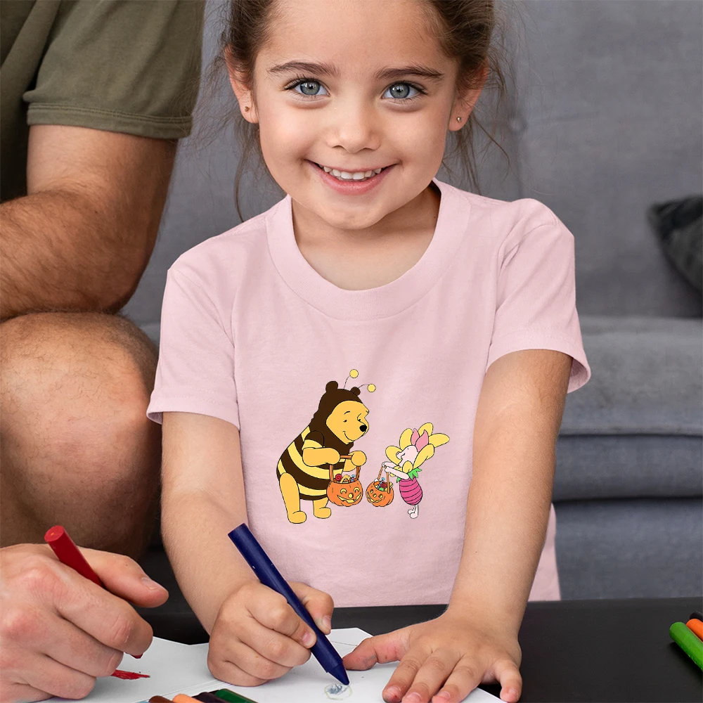 Забавная детская футболка с Винни-пухом, летняя повседневная одежда большого размера для девочек, детские топы Y2k, модная детская футболка Disney 2021