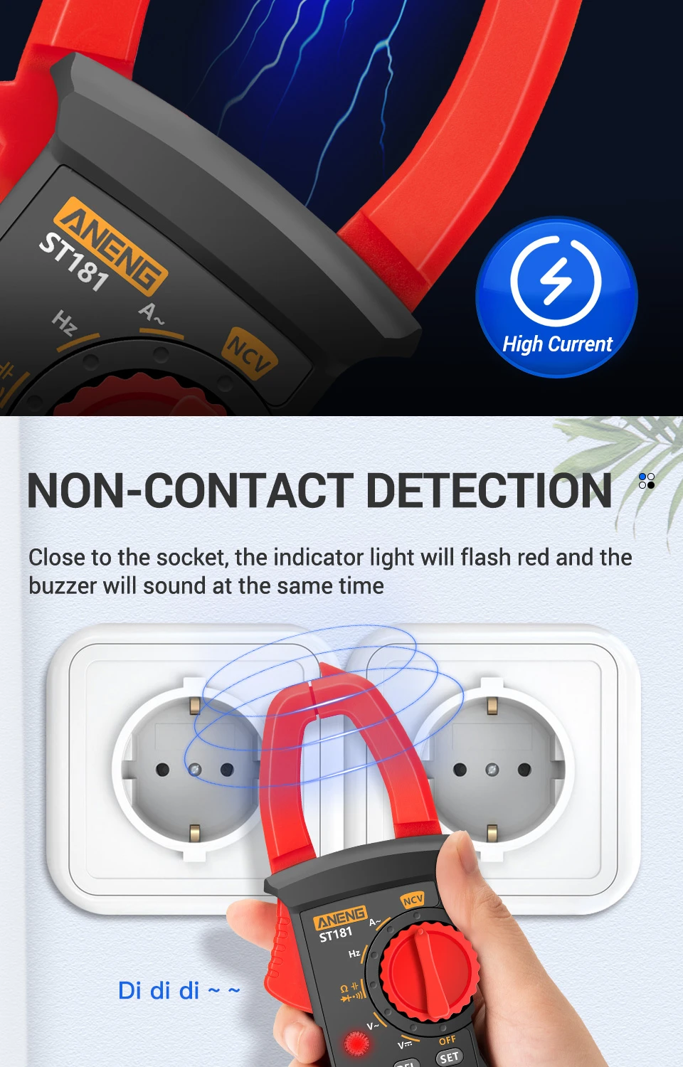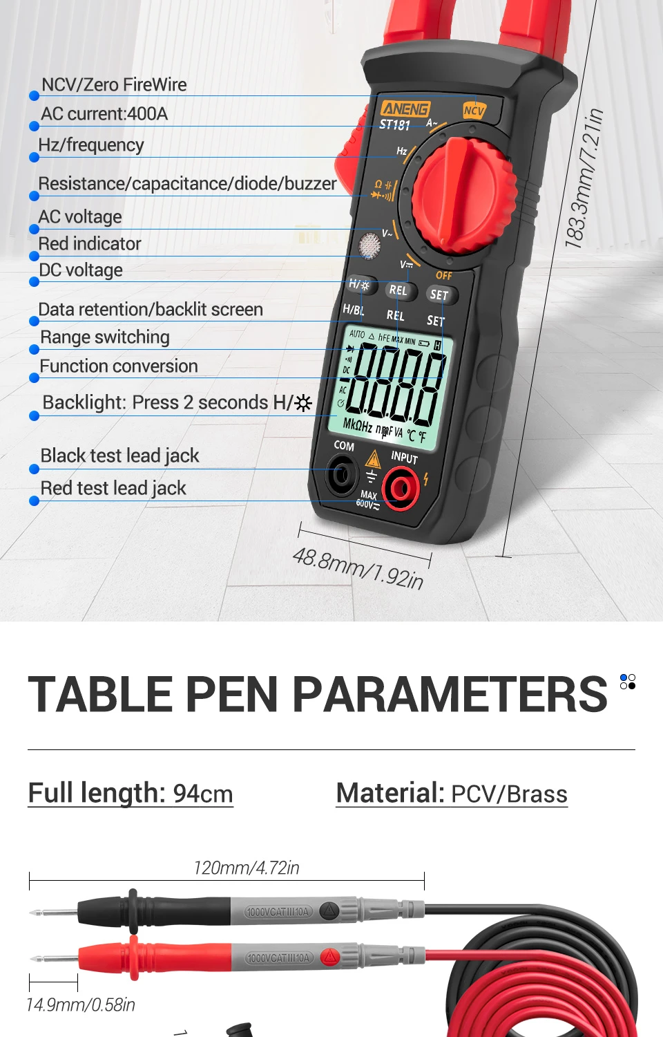 Цифровой мультиметр-зажим ANENG ST181, мультиметр 4000 отсчетов с а...
