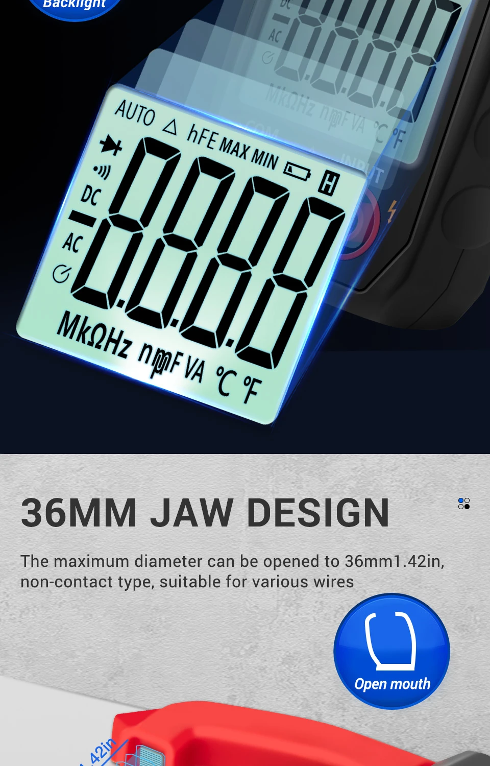 Умный Цифровой мультиметр-Зажим постоянногопеременного тока, 4000 отсчетов, амперметр, тестер напряжения, автомобильный амперметр, герц, тестер емкости