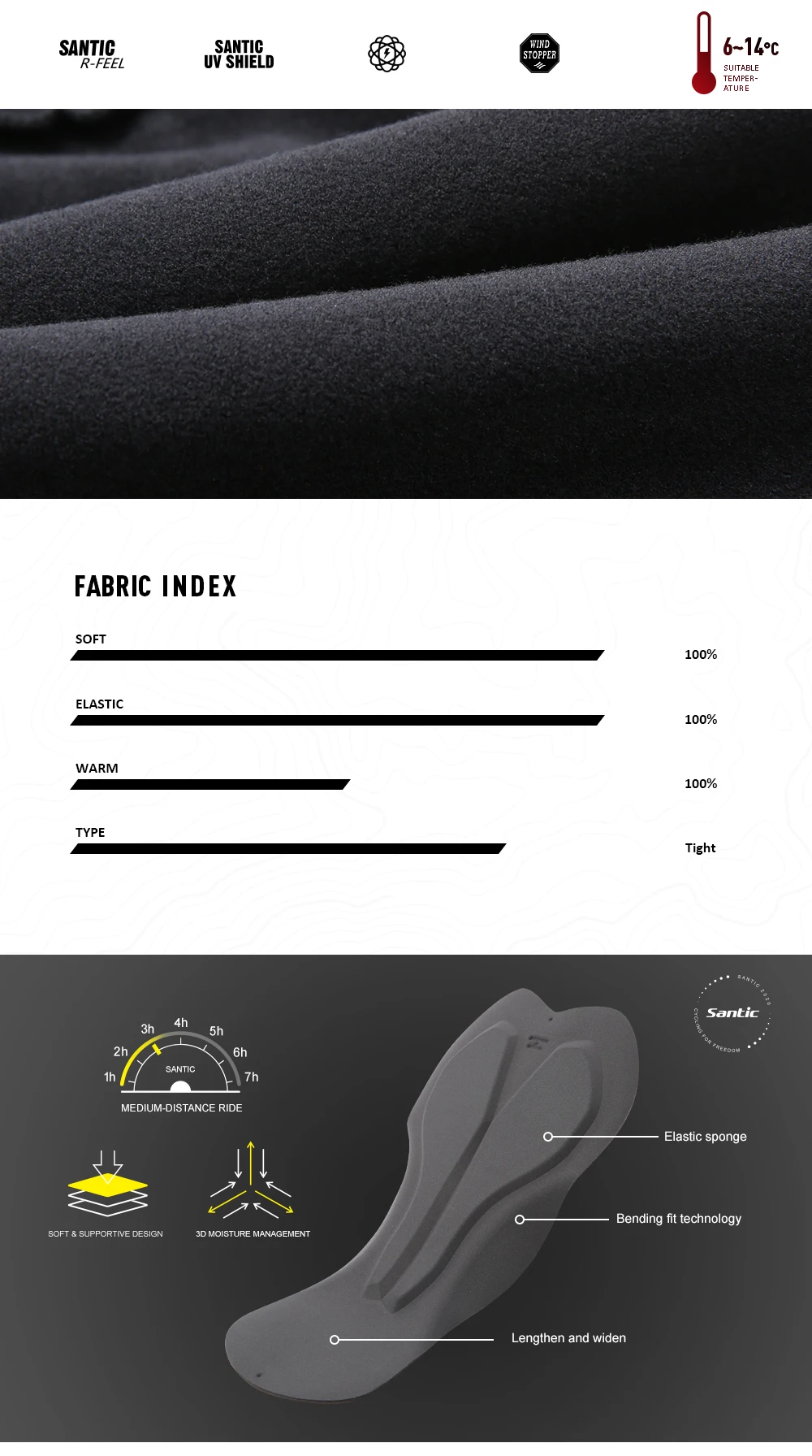 Лаконичные стильные флисовые штаны для велоспорта на осень и зиму имеют светоотражающие вставки на боковых панелях, что хорошо подходит для ночной езды. В положении колена используется ветрозащитная ткань для защиты коленных суставов, которая хорошо подходит для длительной езды.
