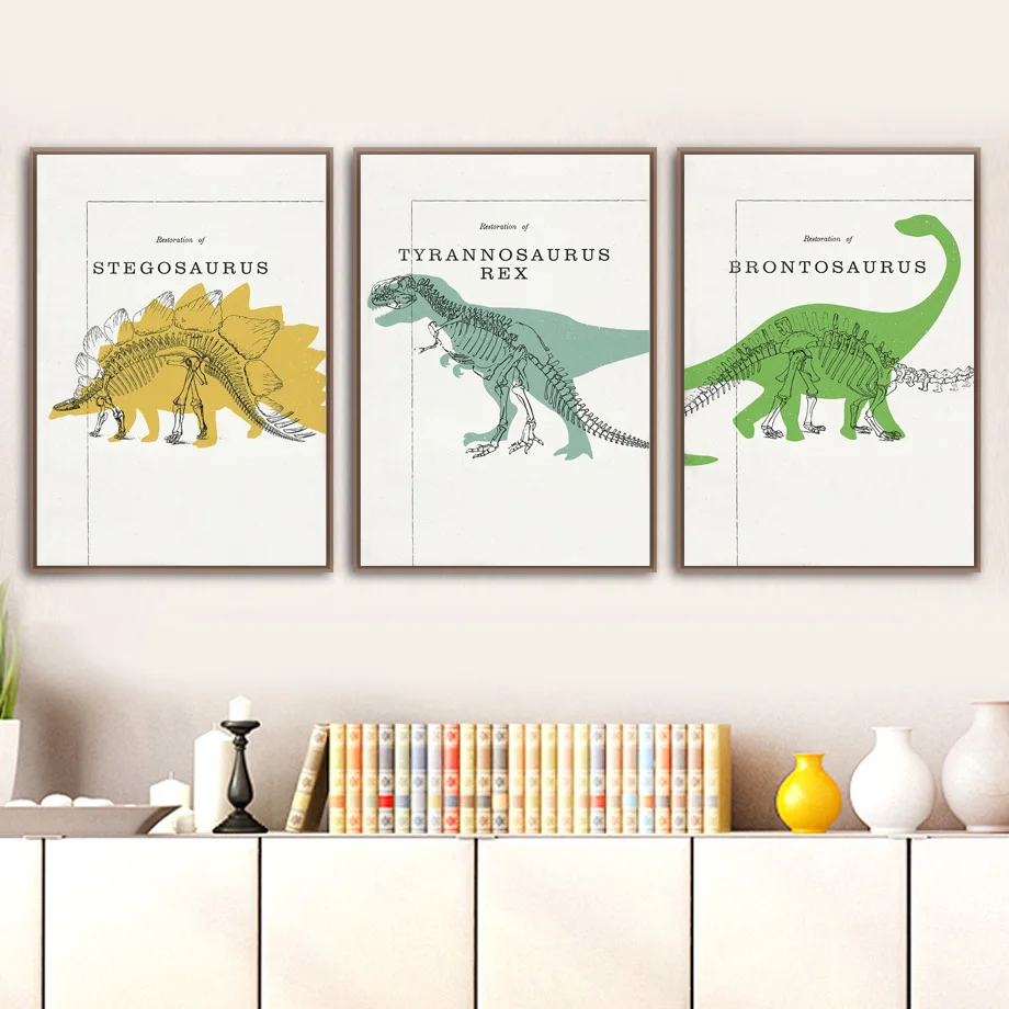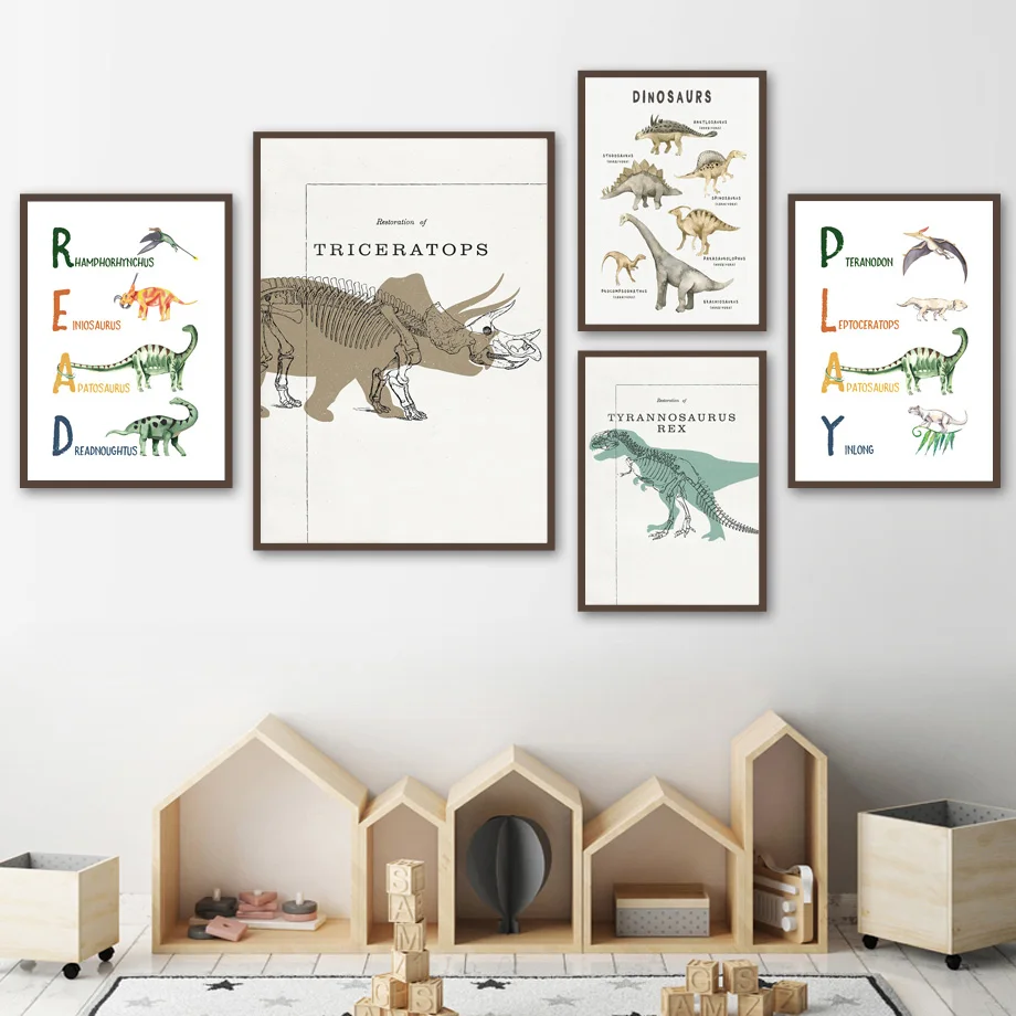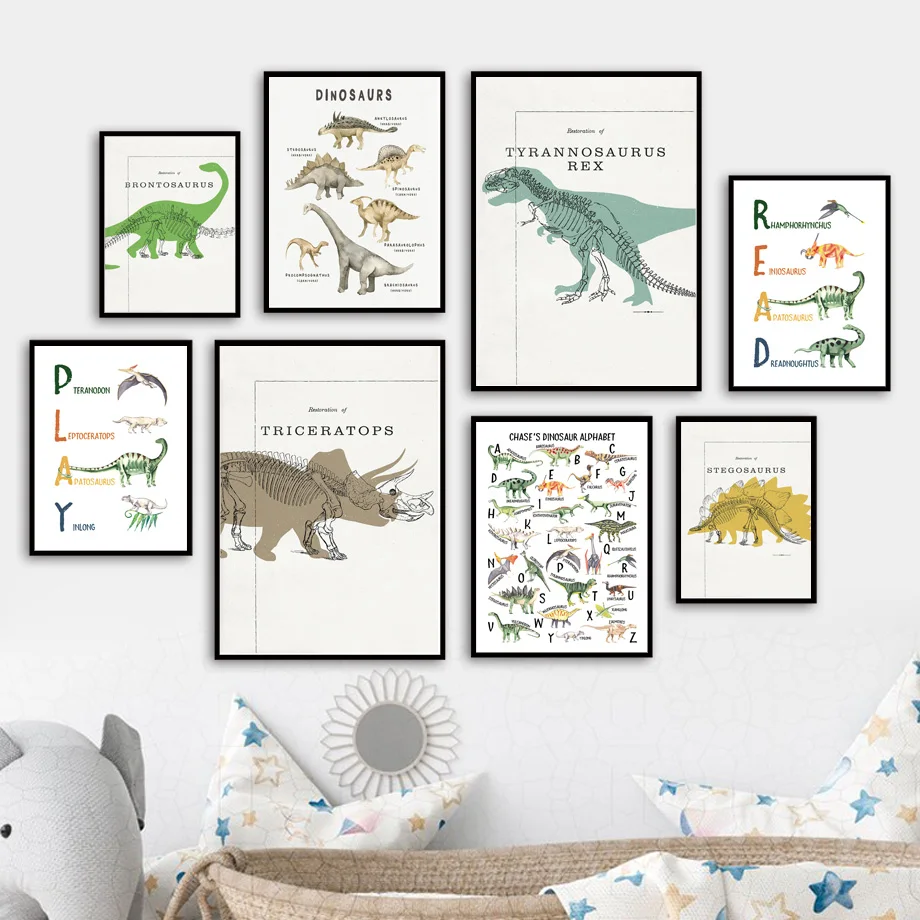 Динозавр Скелет Алфавит ABC игровая комната скандинавские постеры и принты настенная живопись холст настенные картины декор для детской комнаты