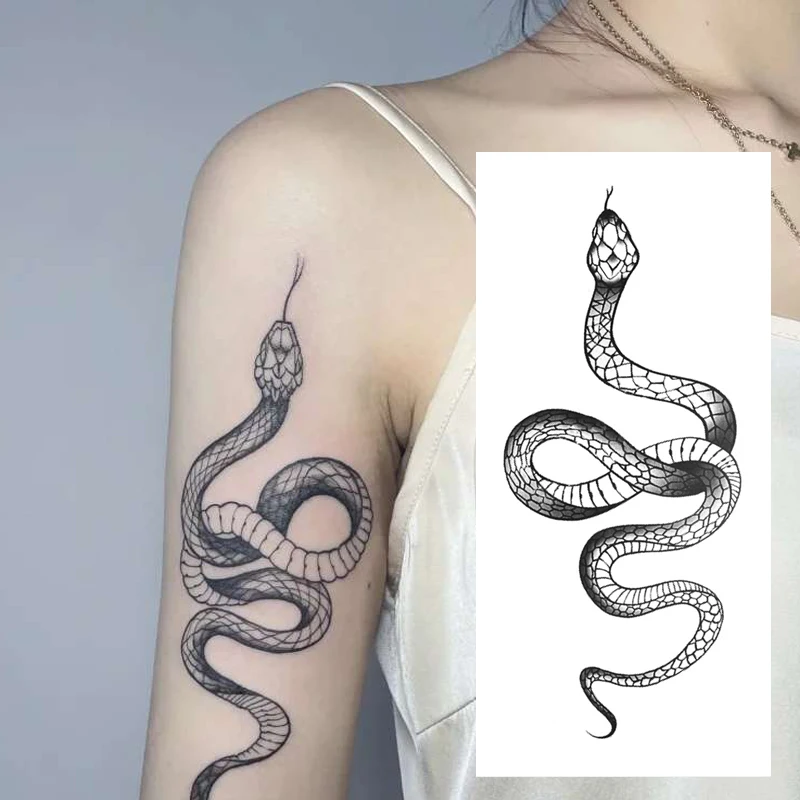 Тату-наклейки с черной змеей, водостойкая, временная татуировка с животными