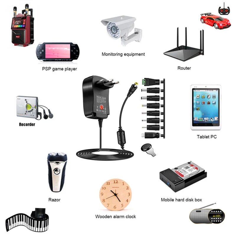 30 Вт универсальный адаптер питания для СШАВеликобританииАвстралииЕС 3 в 4,5 в 5 в 6 в 7,5 в 9 в 12 В переменного тока преобразователь зарядного устройства постоянного тока + 5 В А USB-порт с 8 шт. разъемов