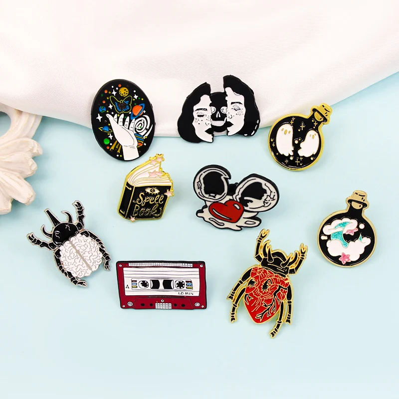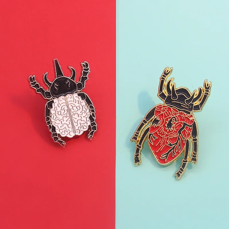 Брошь с эмалью в виде животных, жука, насекомого, сердца, мозга