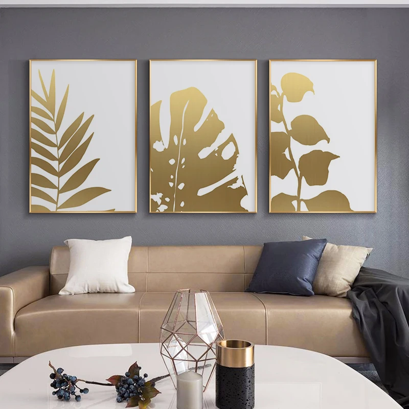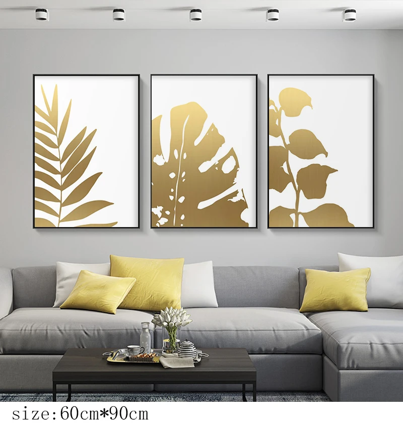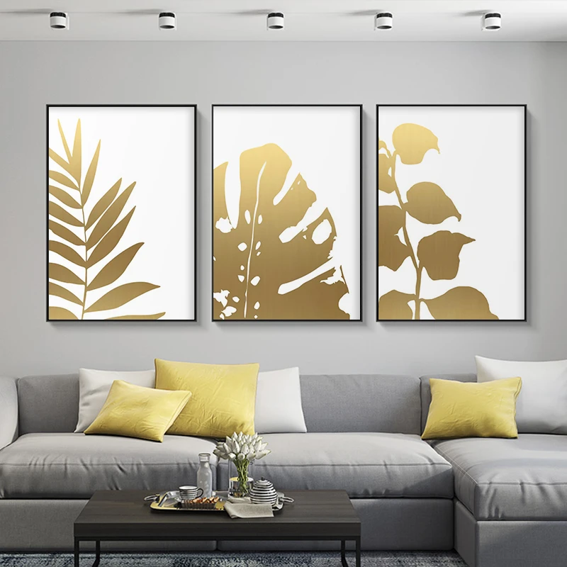 Золотой растительный лист холст постер Monstera печать Современный домашний декор настенная живопись скандинавский Декор для гостиной картина