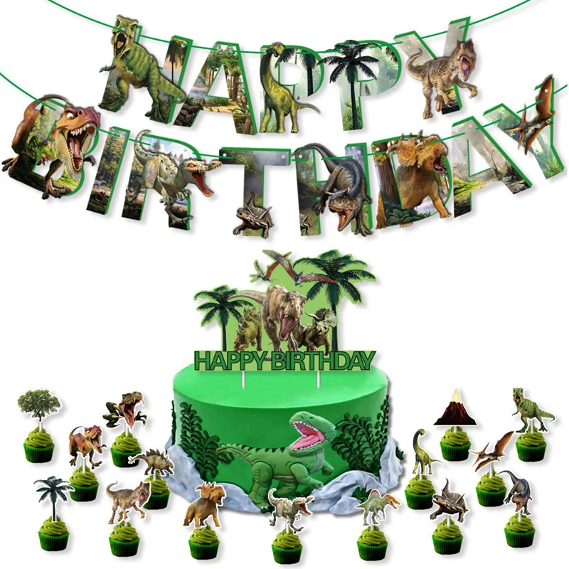 Украшение в виде динозавра, яркий флаг, Набор открыток для торта, д...
