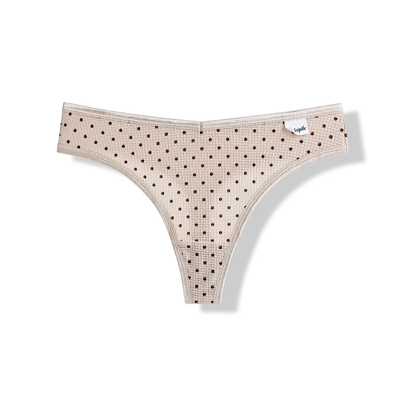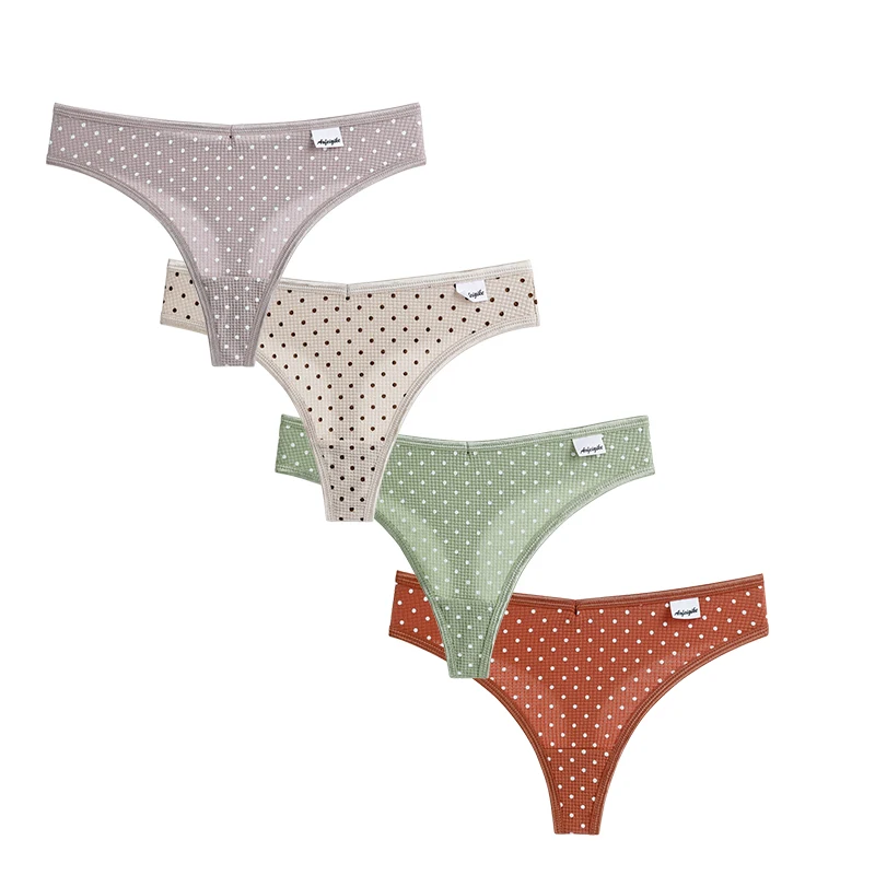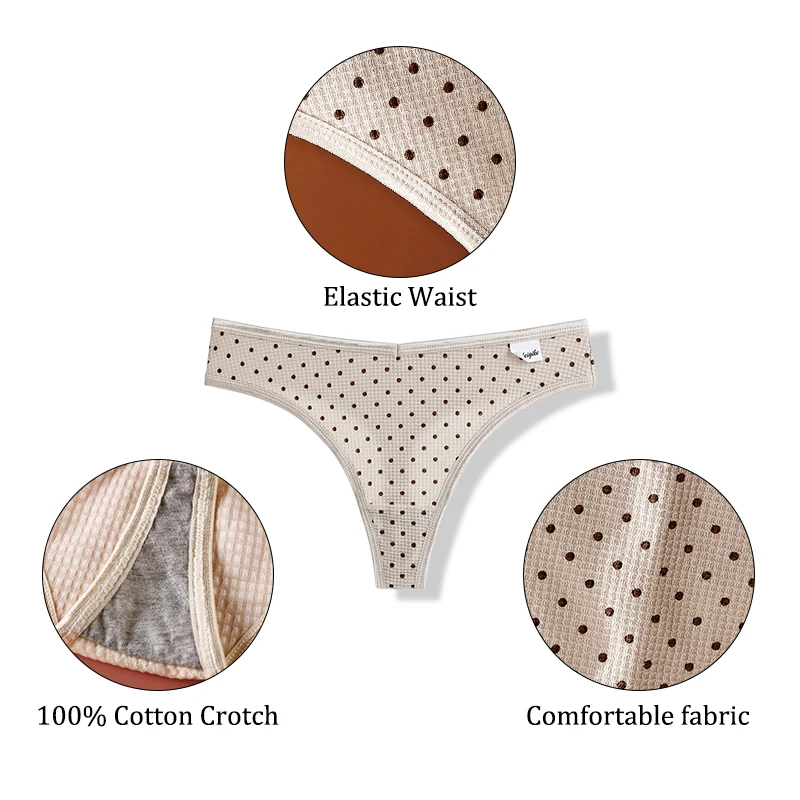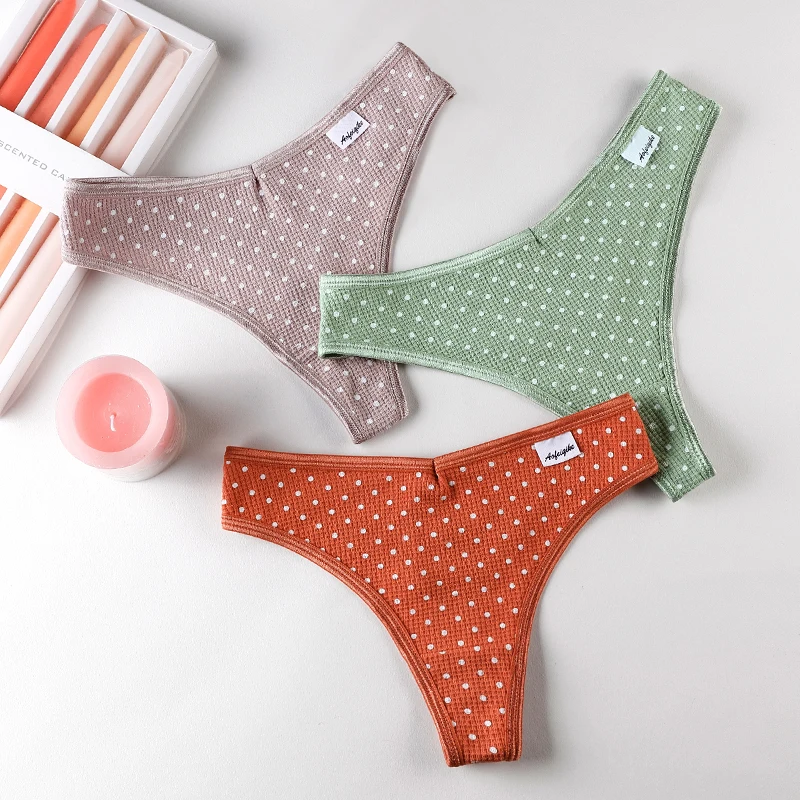 3 шт., женские хлопковые трусы-тонги с принтом в горошек