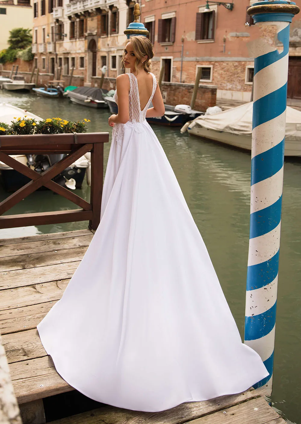 Платье свадебное атласное ТРАПЕЦИЕВИДНОЕ с глубоким круглым вырезом...