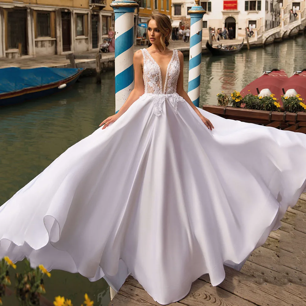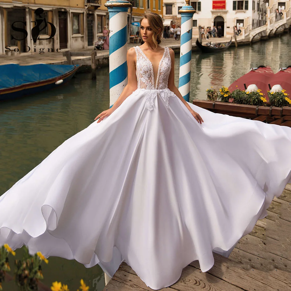 Атласное Бальное Платье soworthy, простое кружевное свадебное плать...