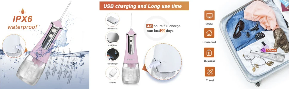 Наш выбор водоочистителя зубных зубов имеет водонепроницаемый дизайн IPX6, который можно безопасно использовать для душа в ванной комнате и мыть под водой непосредственно для очистки.