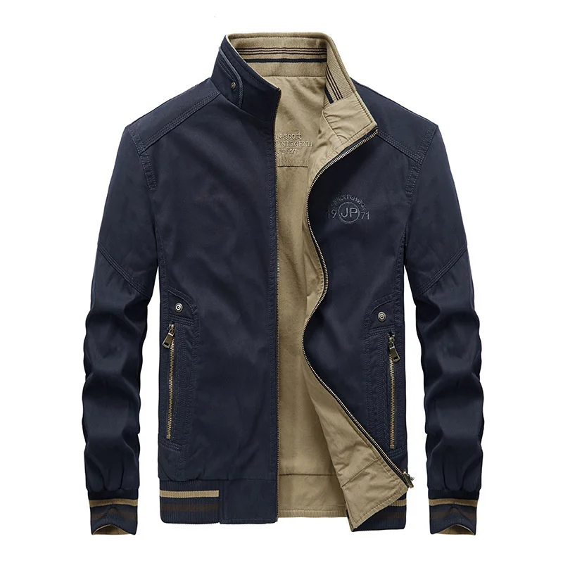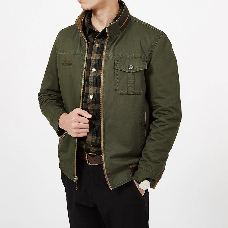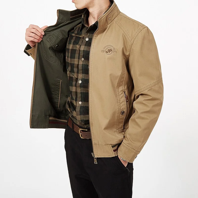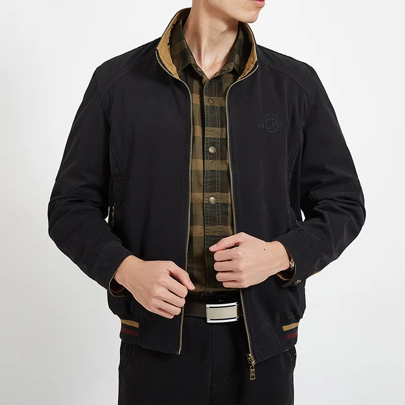 Мужская двусторонняя куртка из чистого хлопка, Повседневная Свободн...