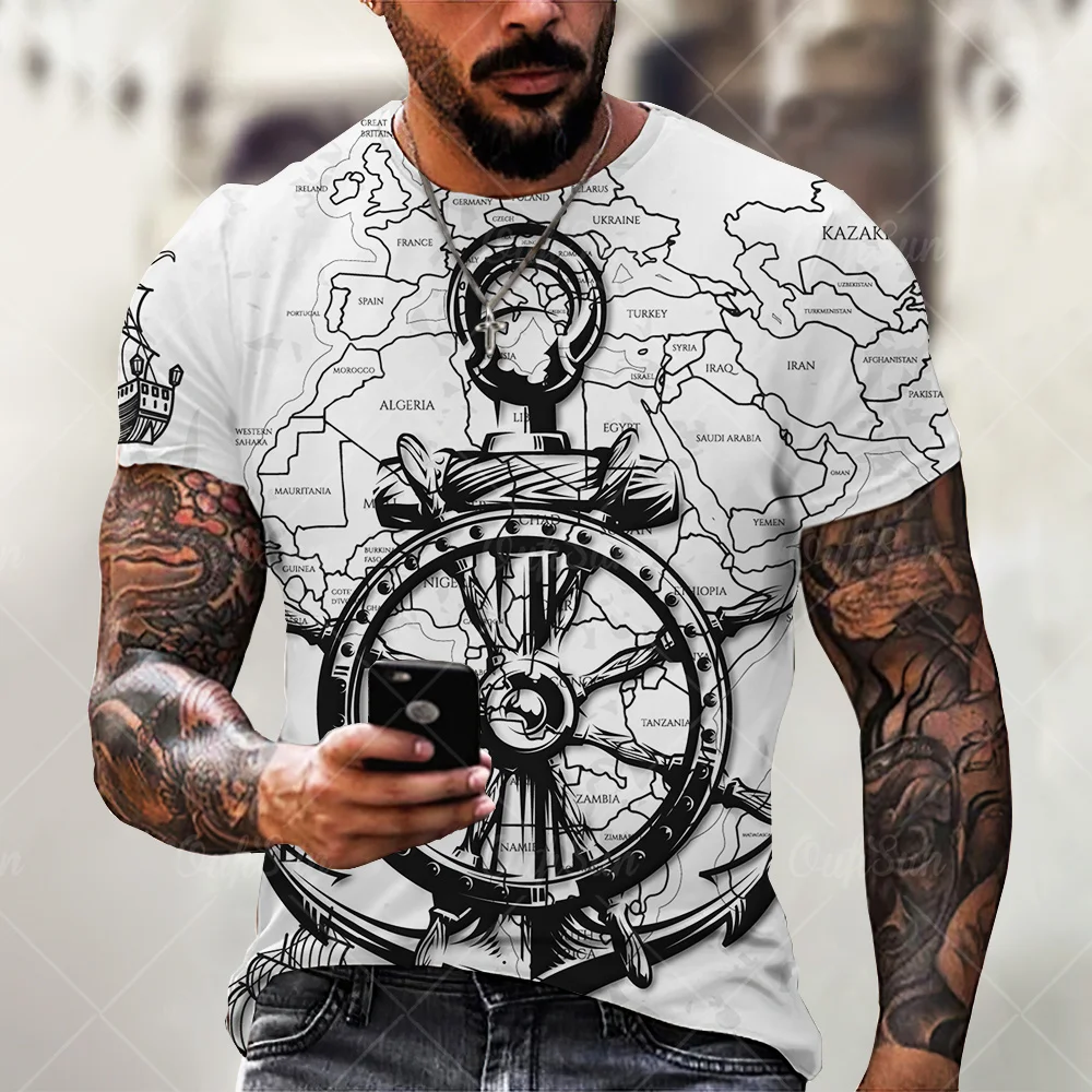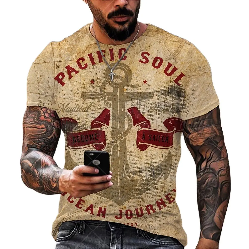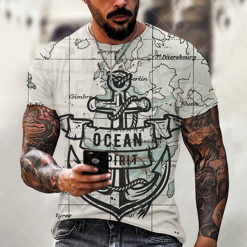 Футболка мужская оверсайз с 3D-принтом якоря, модная Повседневная рубашка с круглым вырезом и короткими рукавами, свободного покроя, лето 2021