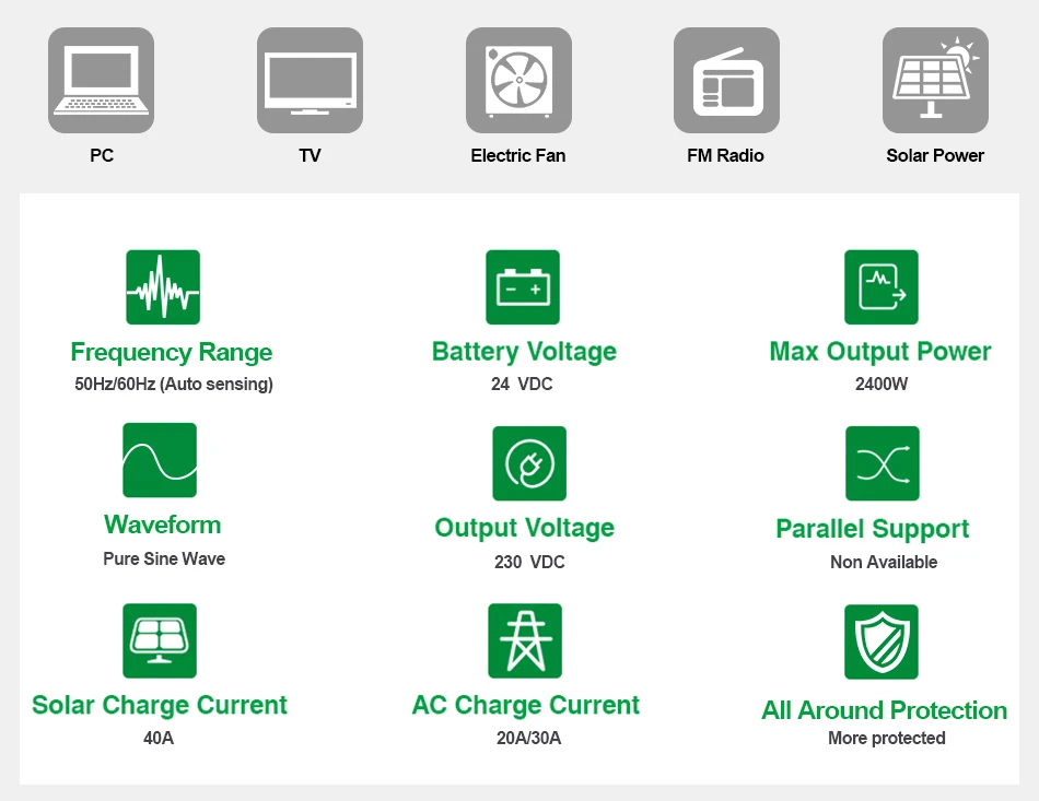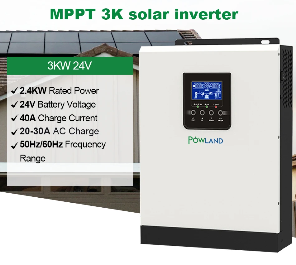 MPPT 3000VA 2400 Вт Гибридный солнечный инвертор с немодулированным синусоидальным сигналом постоянный ток 24 в переменный ток в переменного тока инвертор солнечной установки встроенный Солнечный контроллер 40 А и зарядное устройство переменного тока